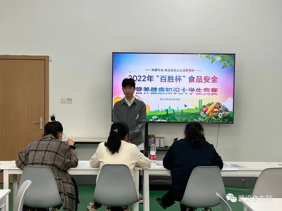 (通讯员 张智)10月17日,2022年百胜杯食品安全与营养健康大学生知识竞赛初赛于临湖轩C1019举行。初赛由范露老师、黄镭老师以及陈旭老师担任评委。