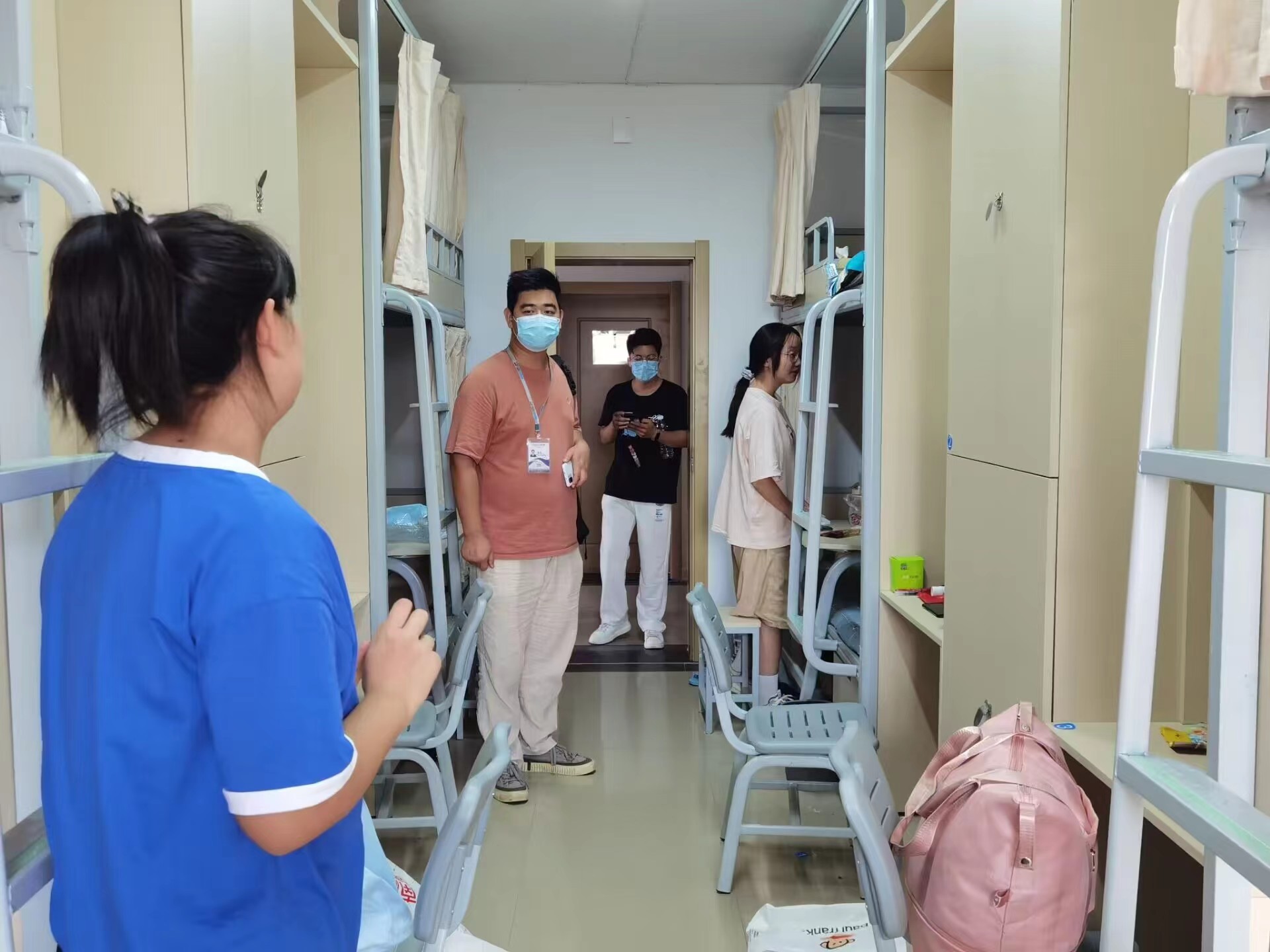 迎新前,我院组织大二的同学们为新生打扫宿舍,学长学姐们细致的用扫帚、抹布除去每一处灰尘,为新生小伙伴们营造了一个舒适的宿舍环境。学院党总支书记李文芳和2022级辅导员龚婉怡在新生到来前前往宿舍检查设施是否完好,提前解决了可能出现的问题。