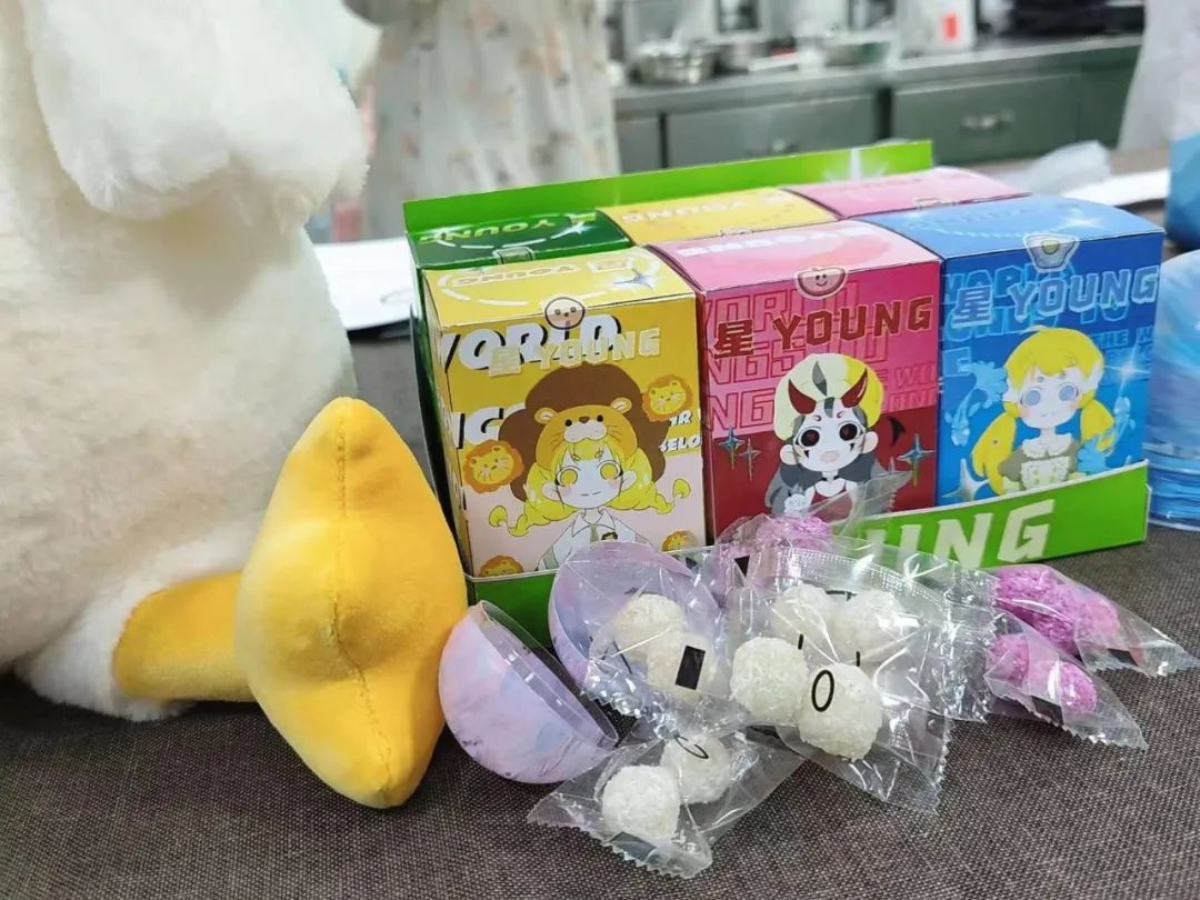 星YOUNG:本产品主体为酸奶球,是酸奶与玉米淀粉混合制作而形成的一种风味零食,产品中富含大量的肠道有益菌,能够改善肠道菌群失调的情况,并且可以促进肠道蠕动、消化,达到润肠通便的作用。在包装设计上,本产品脱胎于“十二星座”这一古老传承。以传统文化背景为主题,将酸奶售卖与盲盒形式激发消费者对本产品的购买欲,同时借助现时代背景和新型消费观,在多元化的文化吸引下,提高其购买意愿。由于本产品适用人群广泛,易于给消费者留下印象。
