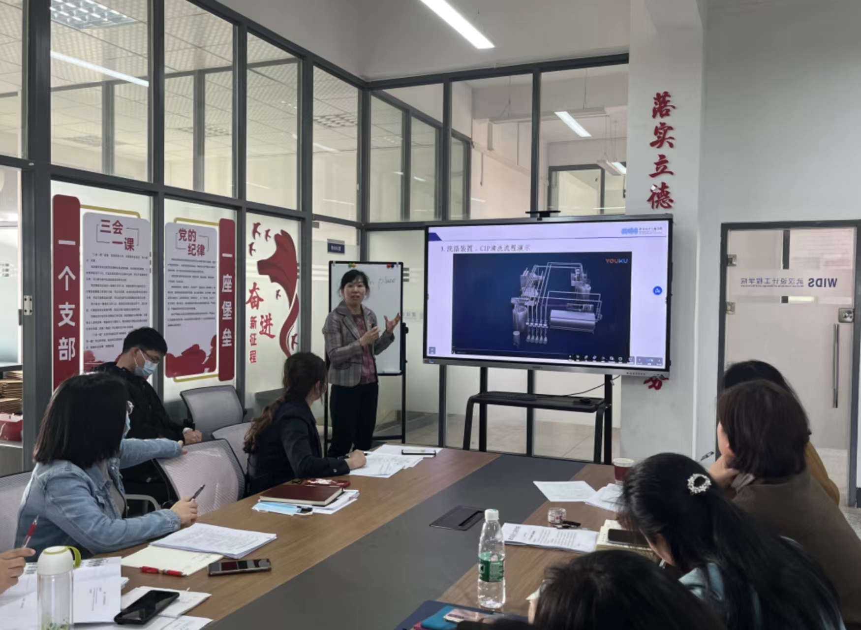 范露老师以生动形象的小视频为切入点,介绍了瓦楞纸板在日本奥运会和上海方舱医院中的用途,最后用“外刚内柔”四个字凝练概括出瓦楞纸板在包装物品中的应用原理。石慧老师以原核微生物中细胞壁的结构特点为出发点,讲解了革兰氏阳性菌和革兰氏阴性菌的染色原理。罗璇老师抓取酒精发酵设备中的关键因素,讲解了厌氧发酵设备中发酵罐的结构和设计要点,以及发酵设备在间接发酵和连续发酵中的应用。翟淑红老师以荷叶上水滴的形状为导向,讲述了物理化学中“表面现象”出现的原因。李继伟老师用生动形象的图片,介绍了啤酒发酵工艺、啤酒分类方法和啤酒度数等实用知识。