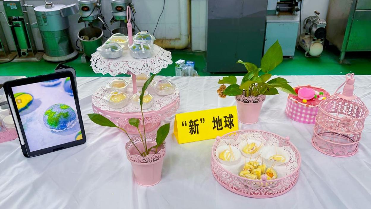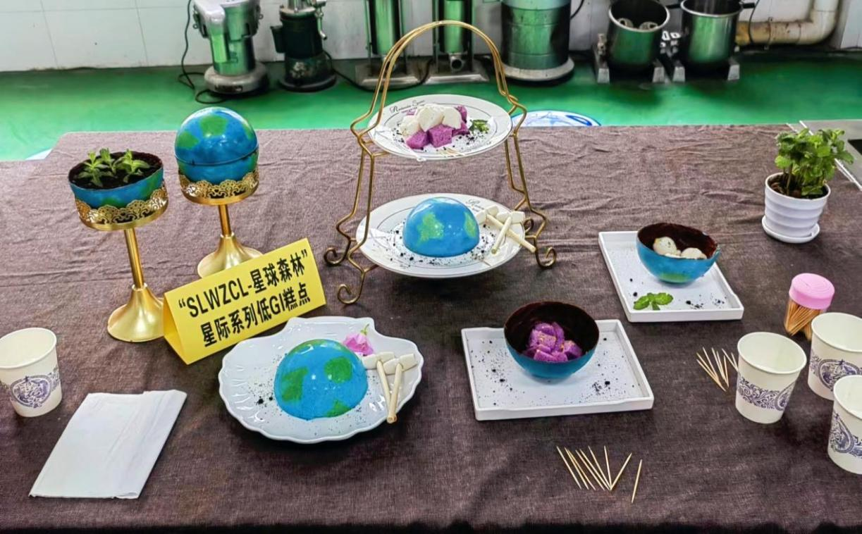 “SLWZCL-星球森林”团队作品主打低GI烘焙,寓意“探索地球、挖掘美食”。这款作品以可循环材料制作星球外壳,搭配独特的内中外三层结构,添加了多酚发酵产物,营养健康,展现了关爱地球家园的核心思想。