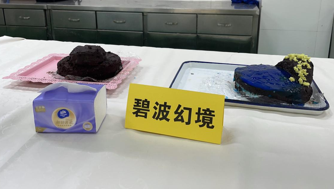 碧波幻境作品团队创新将吉利丁与寒天粉相结合,模拟海洋场景,产品兼具爽脆口感,添加慕斯赋予戚风蛋糕独特的风味和口感,是一款创意、口感和营养兼备的科幻烘焙产品。