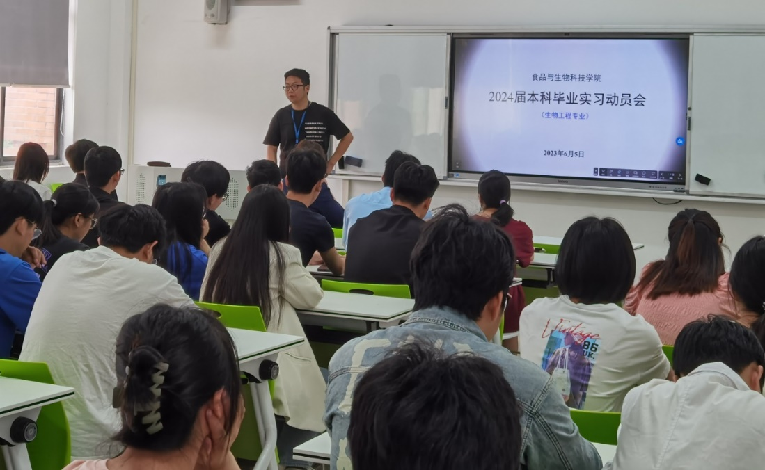 (通讯员 邓祥宜 李军胜)为扎实做好2024届本、专科生毕业实习相关工作,进一步促进学生对所学知识和技能进行实践运用,引导学生明确认识毕业实习的目的和意义,我院于2023年6月5日至6月8日分三场次分别对20级生物工程、食品科学与工程和22级食品质量与安全(专升本)150余名本科生以及21级食品营养与健康110余名专科生召开了毕业实习动员大会,会议由食生院副院长付晓燕主持,学生们积极响应,取得了很好的效果。