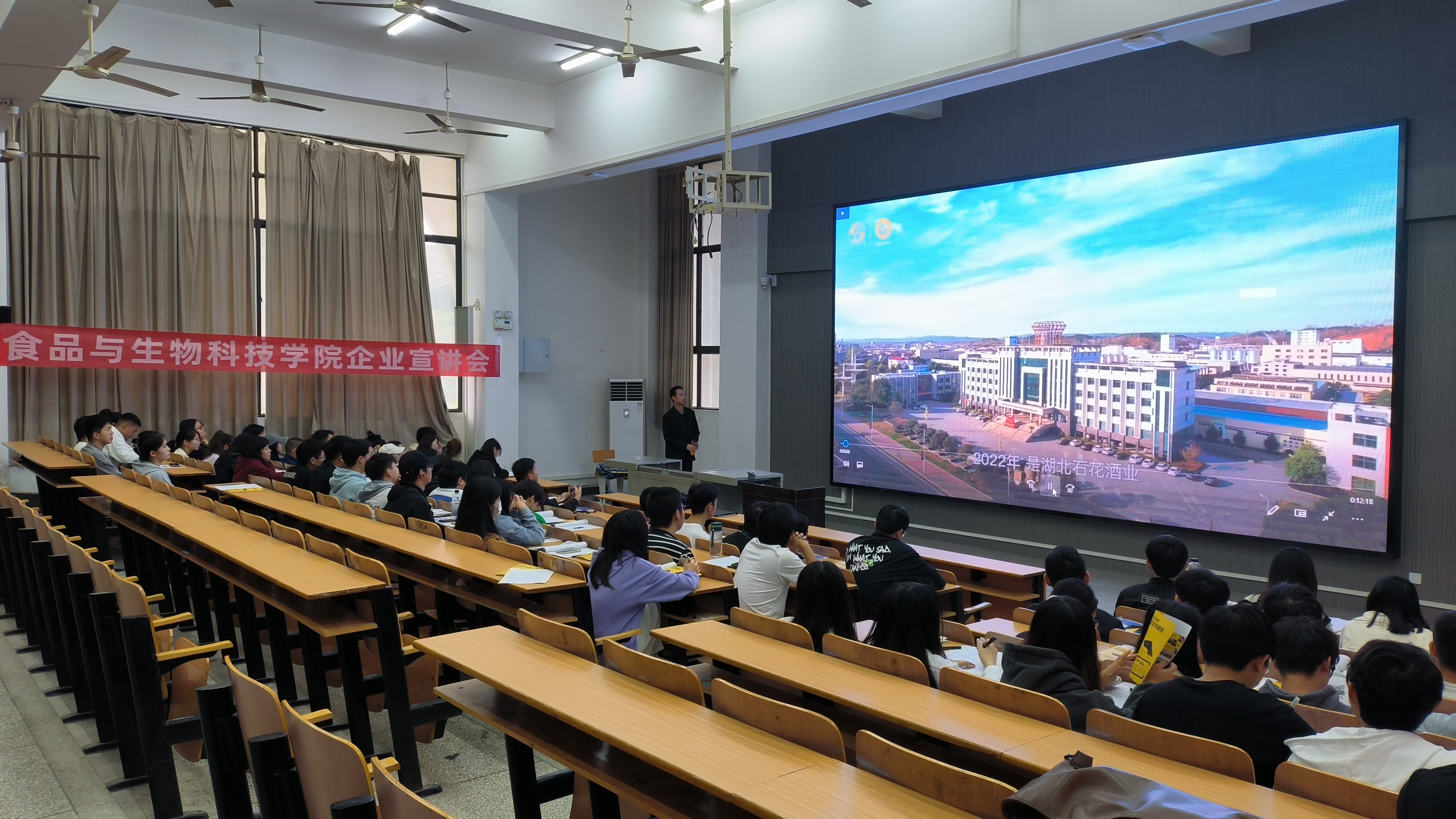 接着,企业招聘负责人从公司的发展进程、共建班的含义以及人才培养模式,重点强调了公司对员工的培养与成长的重视、内部完善的激励机制以及丰富多样的职业发展机会向同学们进行了详细的介绍。通过企业的宣讲,学生对石花酒业有了更直观的了解,对就业方向有了更明确的选择和计划,加深了对共建班模式的认识,了解其包容性。会议最后,企业宣讲人对众学子提出的问题,做出了一一解答并当场进行了面试环节。