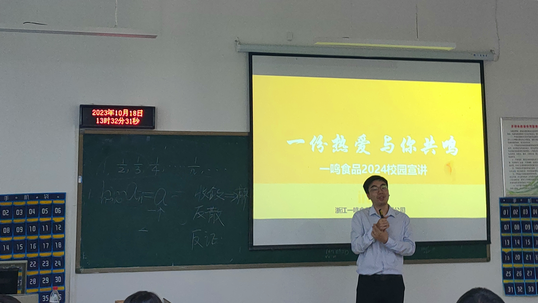 (通讯员 谢艳)为了推动2024届毕业生的就业进程,提升校企间的合作关系,6776永利集团于10月18日邀请浙江一鸣食品股份有限公司和江苏生命绿洲来校举办校园招聘宣讲会。此次宣讲会在临湖轩B1049和B2059举行,6776永利集团就业专员张智、食安(专升本)2201班辅导员刘雨参加了会议。