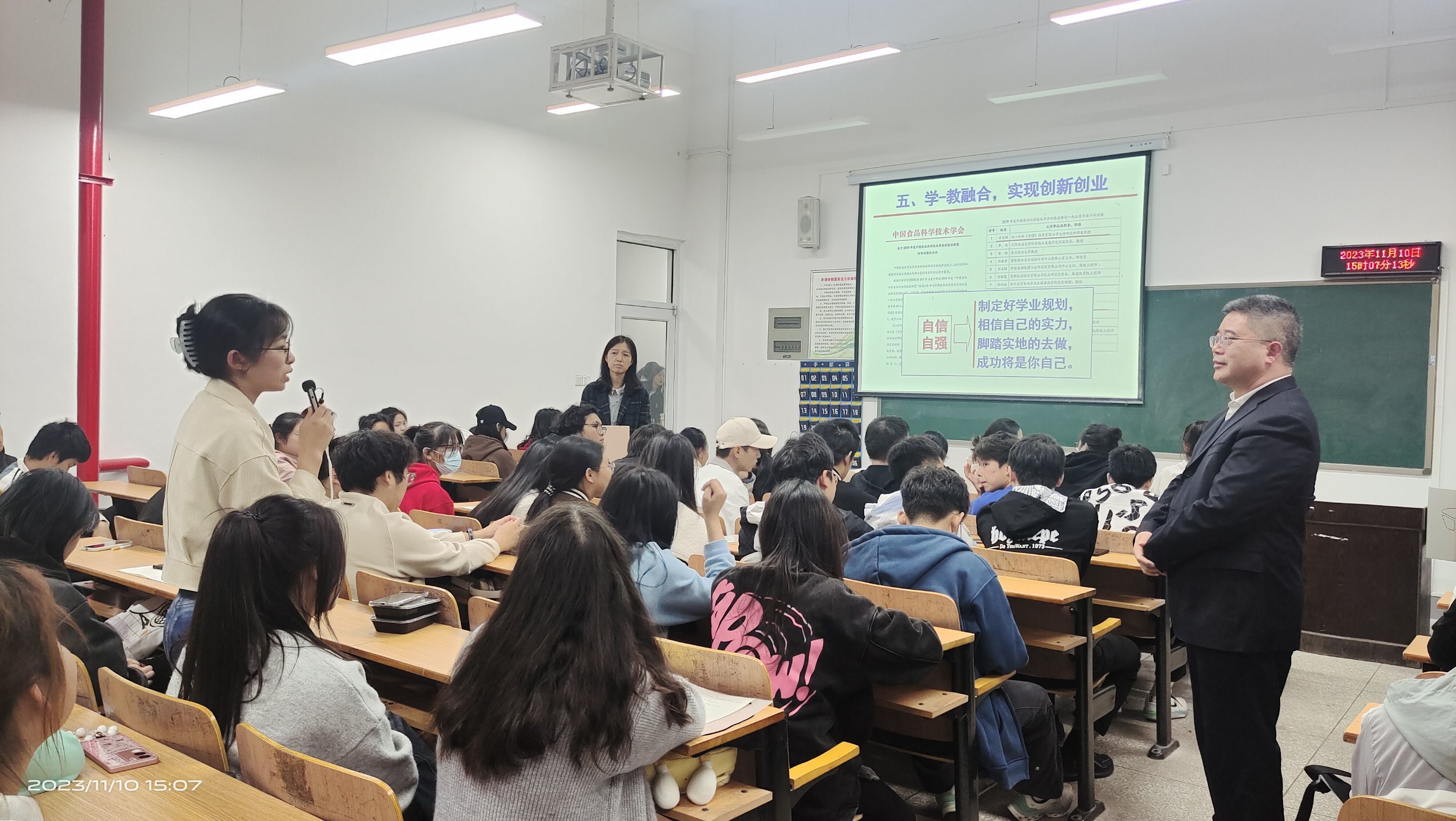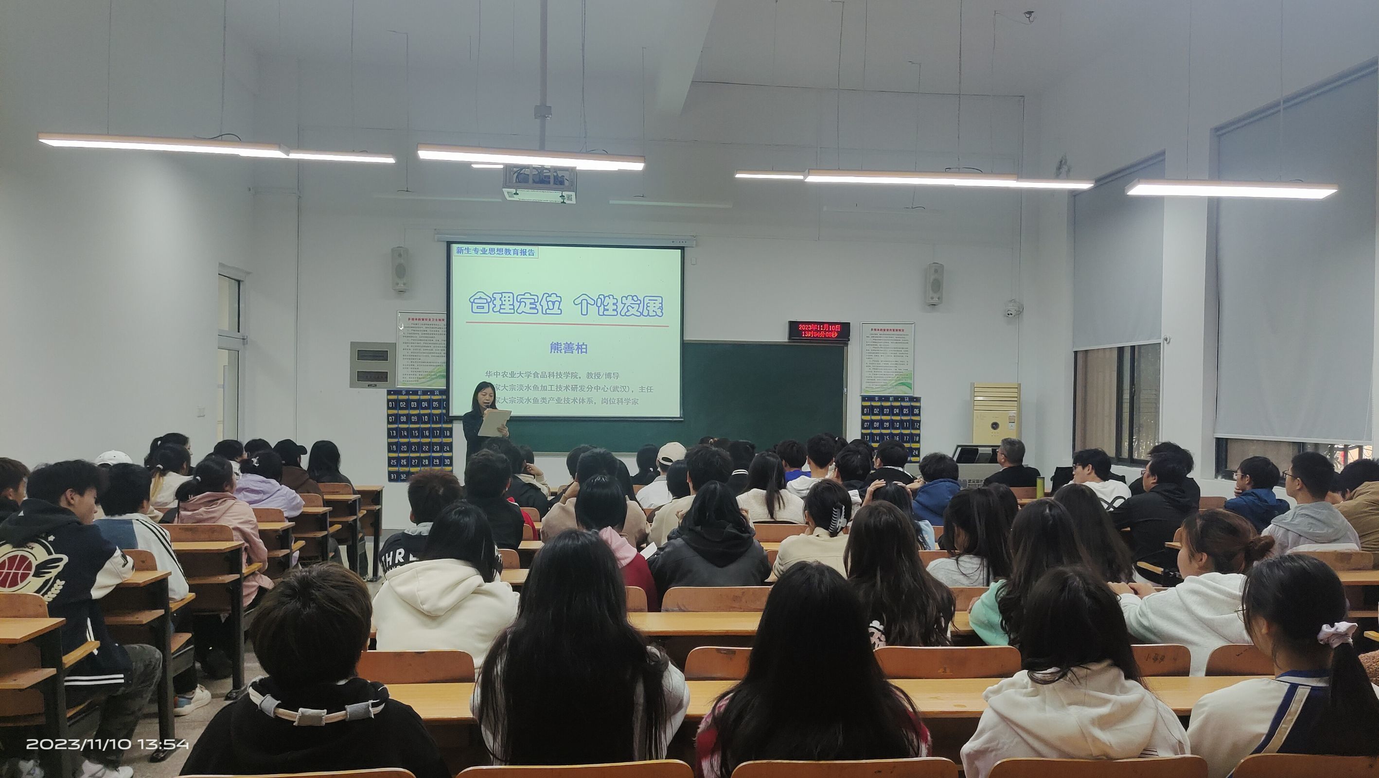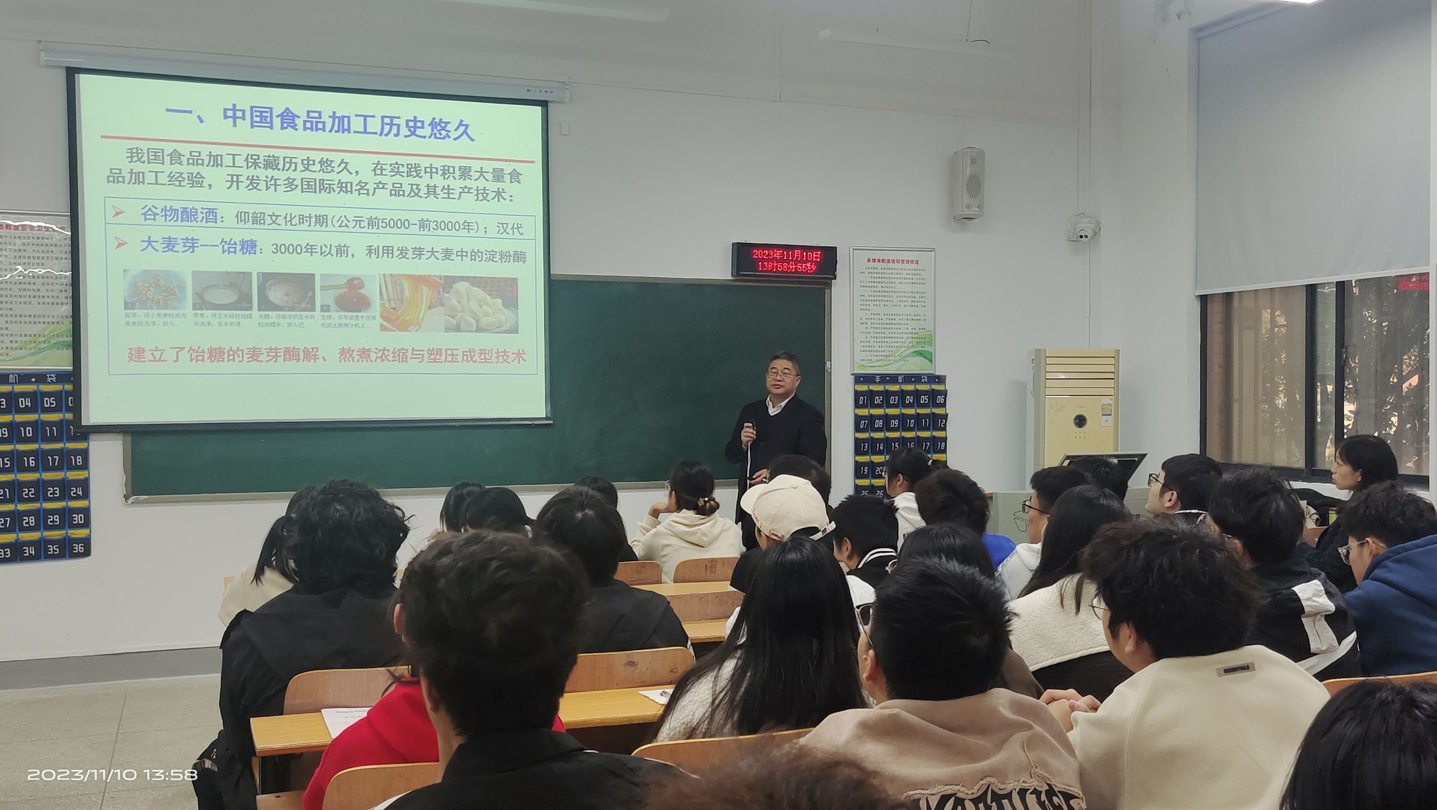 (通讯员 汪芳)2023年11月10日下午14:00,6776永利集团食品科学与工程专业首席教授熊善柏为在T11-A1049为2023级新生开展了主题为“合理定位,个性发展”的专业教育,旨在帮助食工专业新生更全面地认识本专业,并在此基础上明确自己的目标,做好大学四年规划。活动由食工系系主任郑妍主持,食工系部分教师代表参加了此次活动。