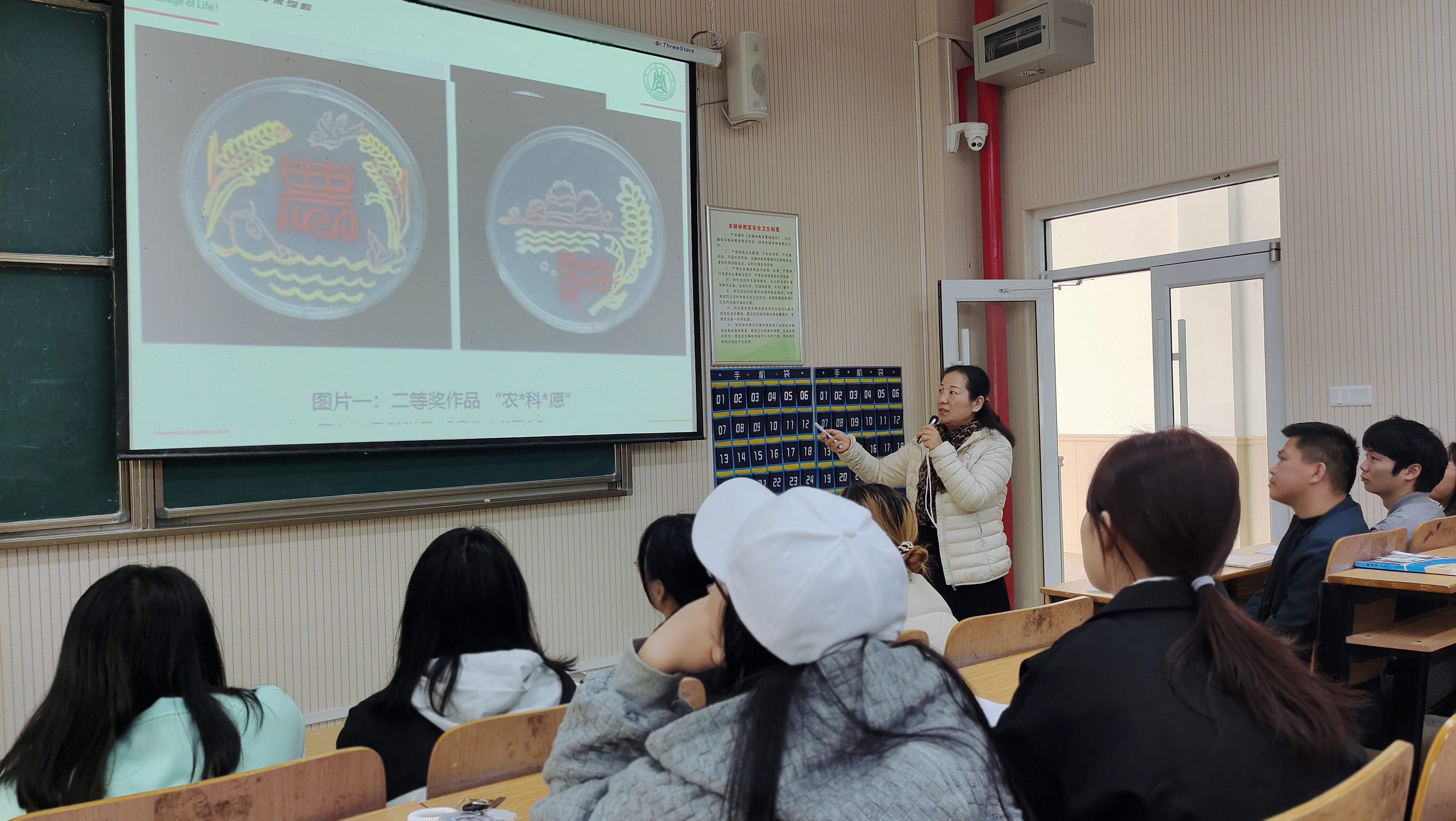 随后,齐研究员讲述了全国大学生生命科学竞赛、湖北省大学生生物学实验技能竞赛、湖北省微生物培养皿艺术设计大赛、全国细胞生物学创意课堂竞赛、湖北省大学生酒体设计大赛、全国大学生合成生物学竞赛等生物学科竞赛,分别从竞赛形式、竞赛时间、地点、获奖比例及评分要点等方面详细介绍。齐老师播放了华农学生别出心裁的参赛视频《细胞生物学 非诚勿扰版》和《实验室正确穿搭》,让同学们在哄堂大笑中获益匪浅,同时也点燃了同学们的参赛热情。
