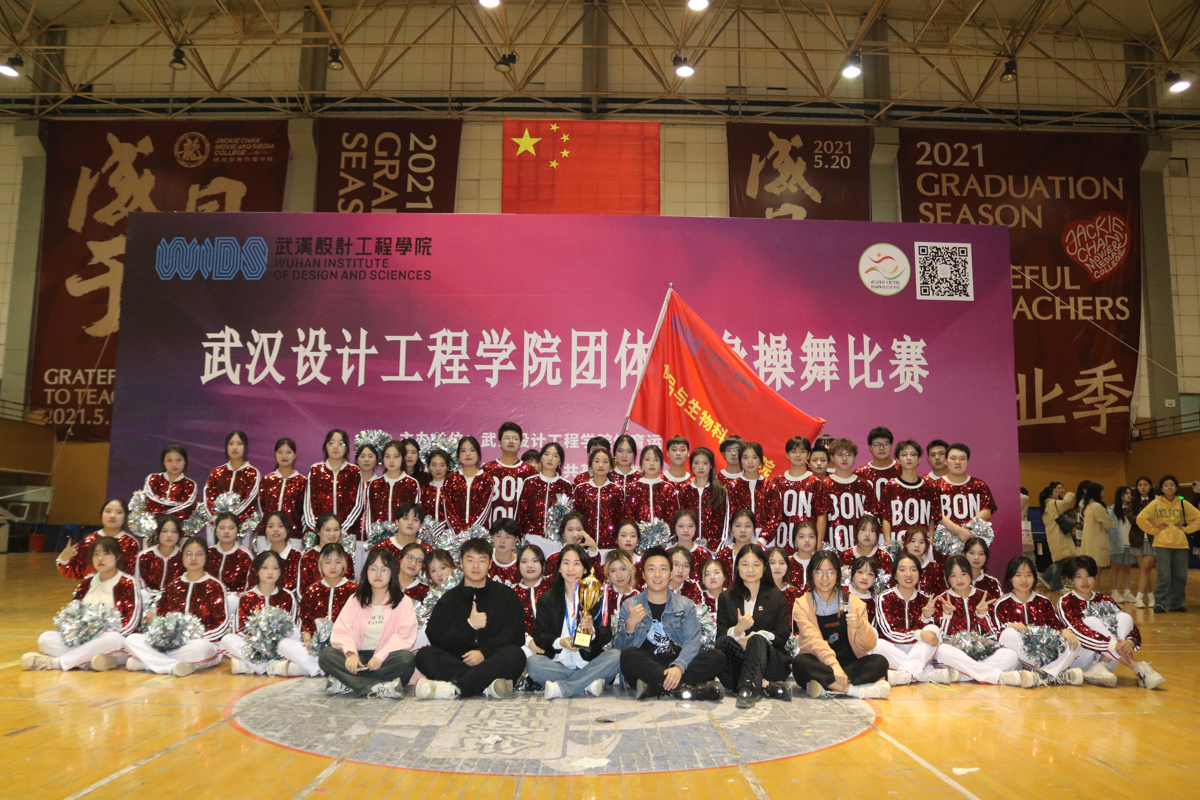 在本次运动会团体健身操舞比赛中,我院团体操运动员经过20多天的刻苦训练,以期用饱满的精神状态与昂扬的斗志来呈现这次舞蹈,最终在比赛中荣获了三等奖。
