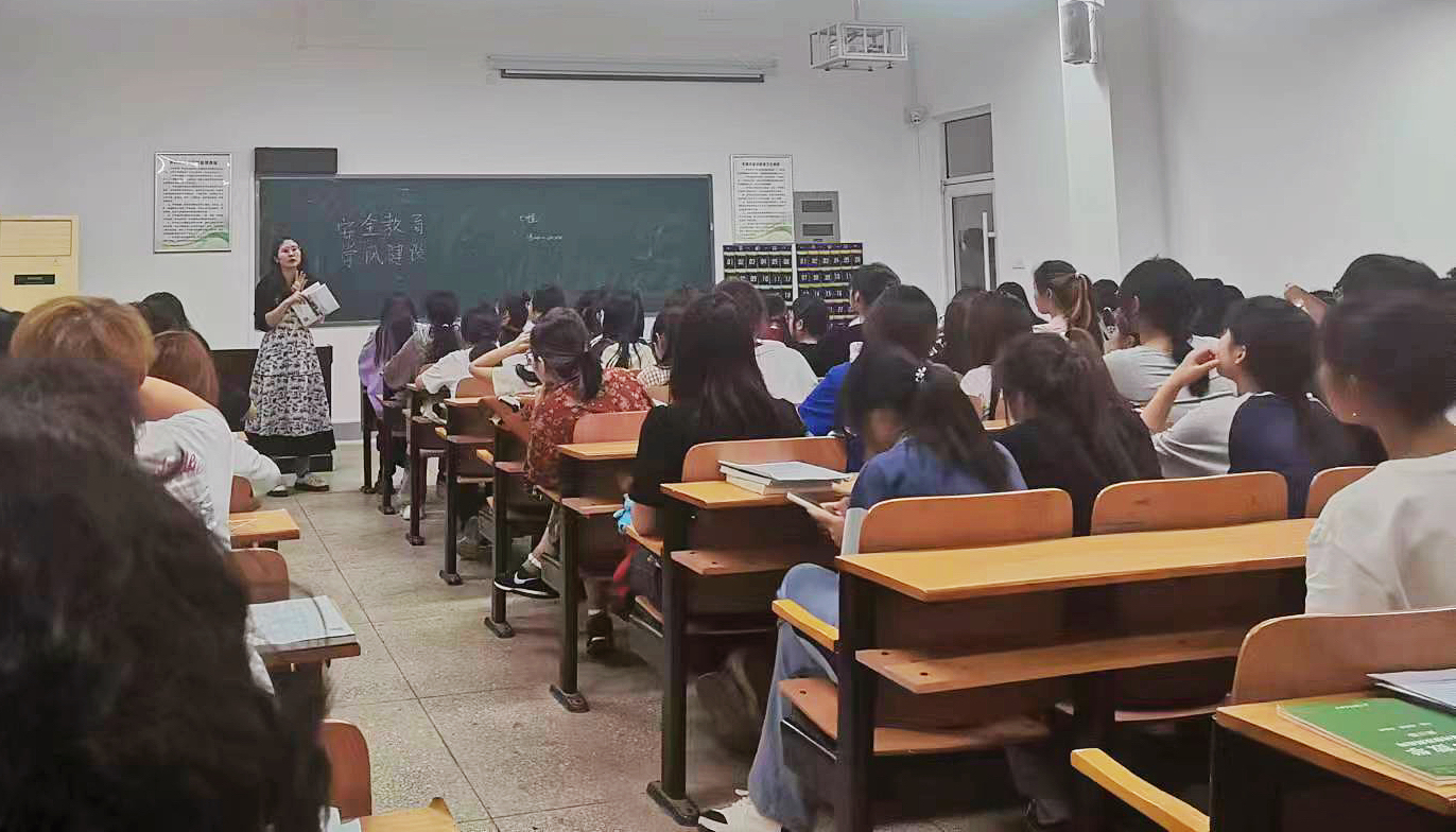 会议伊始,张茹月老师对人身财产安全、消防安全、交通安全、网络安全、饮食安全、心理健康等重要内容进行了深入讲解,并结合近期各地发生的真实案例,对大家进行了重点强调,尤其是交通安全方面,并针对校园内骑电动车载多人、骑电动车不戴头盔等不规范的交通行为进行了批评教育,同时再次提醒同学们校园内外都应遵守交通规则,骑行时戴好头盔;接着,张茹月老师指出,随着天气慢慢转热,一定还要注重防溺水安全和宿舍用电安全,时刻保持警惕,避免意外的发生。随后,张茹月老师也对各班班委强调,一定要做好班级同学留校和离校的统计调查工作,掌握好每一位学生的行踪,保障好每一位学生的安全。