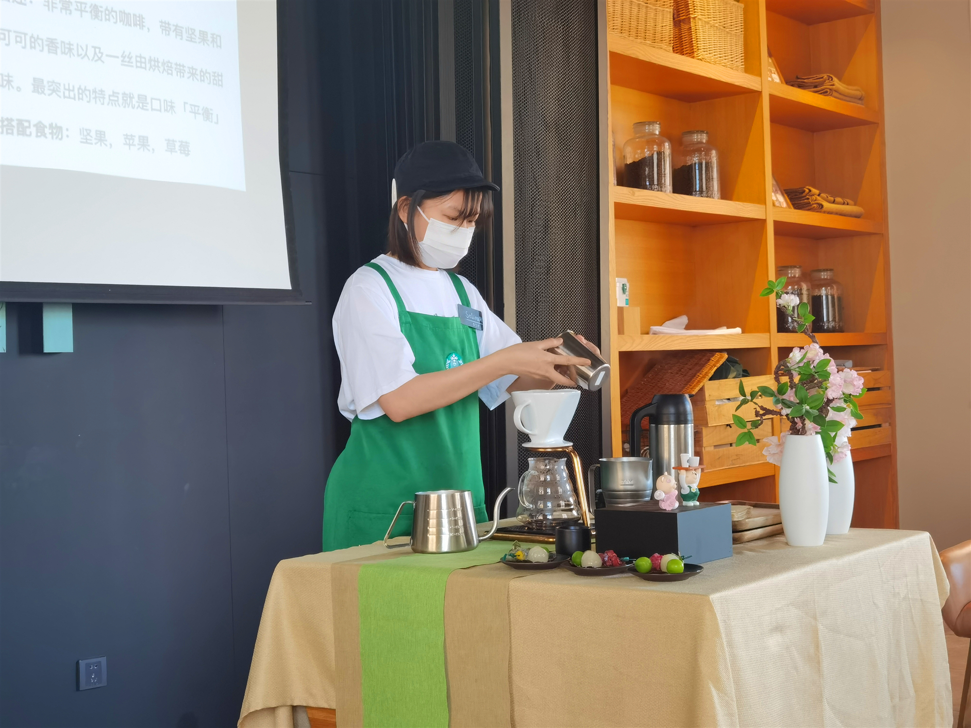 星巴克华中区招聘经理张侠、华中区资深招聘专员王骏对yl6776永利集团一行来访表示热烈欢迎,实习生刘诗怡通过一杯咖啡的制作流程向学校的老师们展示了在星巴克实习9个多月以来工作情况,同时也传递了星巴克的咖啡文化。张侠详细介绍了星巴克的咖啡文化和星巴克的发展历史,并带领校方一行参观了星巴克甄选店。