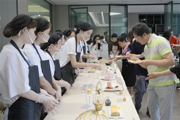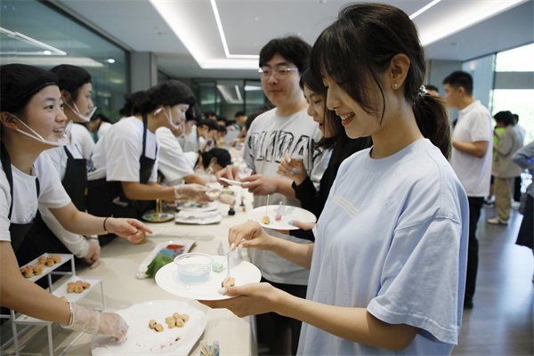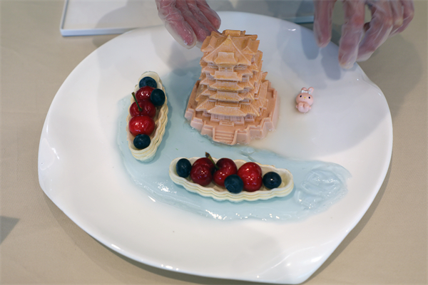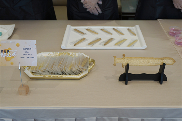 “黄鹤楼饼干”“越王勾践剑”、汤包、冰粉、绿豆汤、钵钵鸡……开幕式结束后,与会嘉宾和师生们移步食品品鉴区,学生们独具特色的创意食品和湖北本地特色小吃一应俱全,深深地吸引了大家尝一尝的兴趣。“这些食品不仅外形美观,还保留了食材原本的味道,避免了过度的甜腻,更好地满足了现代人对健康饮食的追求。”仟吉企业代表刘自力品尝美食后对同学们的创新能力和专业素养给予高度评价。