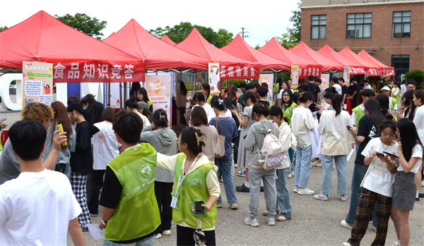 当天下午,本届食品文化节组织的食品生物类企业专场双选会、“食品知识闯关”比赛在得一堂广场陆续开展,18家知名企业来校招才纳贤,为学生提供实习和就业岗位600余个。“食品知识闯关”活动现场人头攒动,“看图猜美食”“美食奇趣盒”“食品知识竞答”“拼图大挑战”……同学们排队竞相体验美食趣味游戏,在普及收获食品文化知识的同时,还能赢取礼品。
