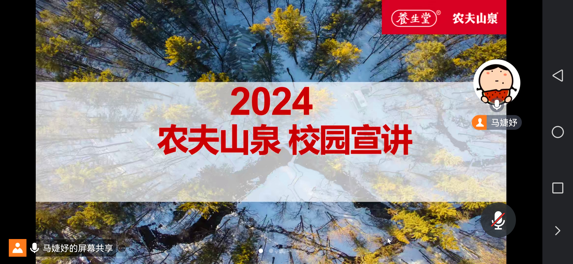 本网讯(通讯员 张智)为拓宽应届毕业生就业渠道,为应届毕业生提供优质就业岗位,6月4日下午,6776永利集团组织企业线上宣讲会,邀请了农夫山泉(淳安青溪)饮料有限公司进行宣讲。此次宣讲会面向6776永利集团2025届全体毕业生,涉及品控、检验、生产等岗位。