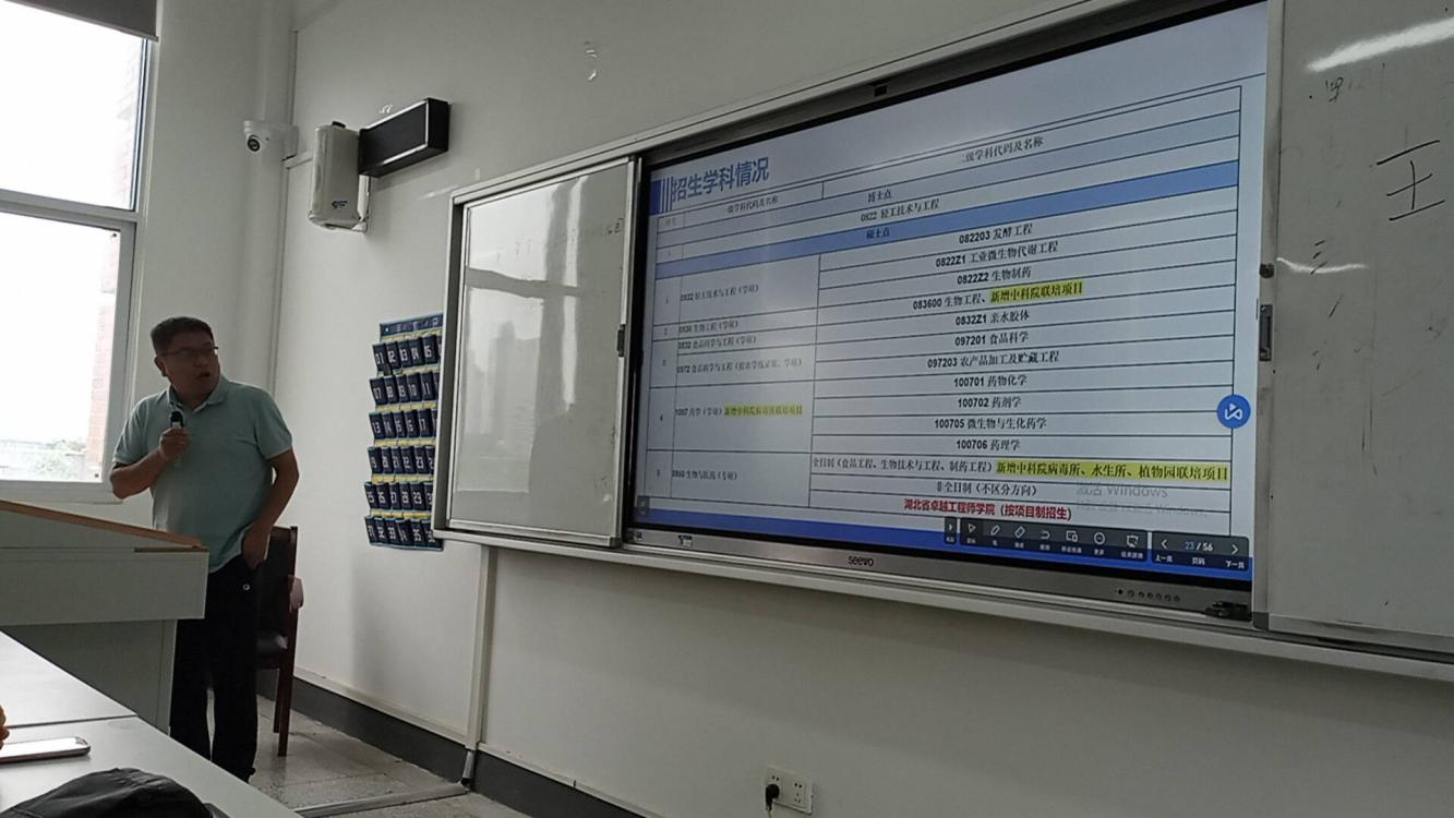 本网讯(通讯员 罗璇)2024年6月25日上午9:30,湖北工业大学生命科学与健康工程学院研究生招生工作负责人黄煌老师和硕士研究生导师赵锦芳副教授来我院开展2025年硕士研究生招生宣讲,对学生们开展考研志愿填报和专业复习相关指导。