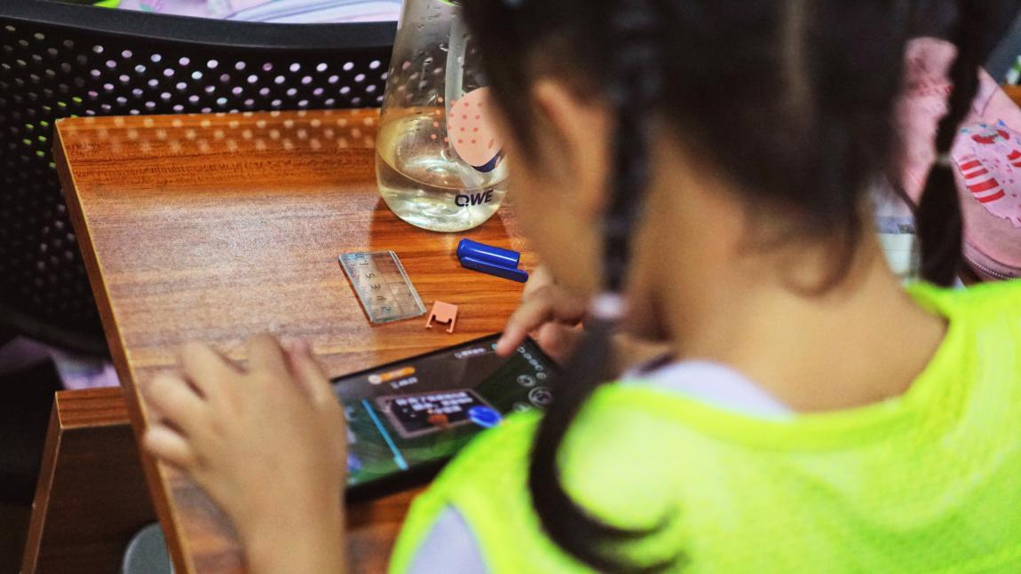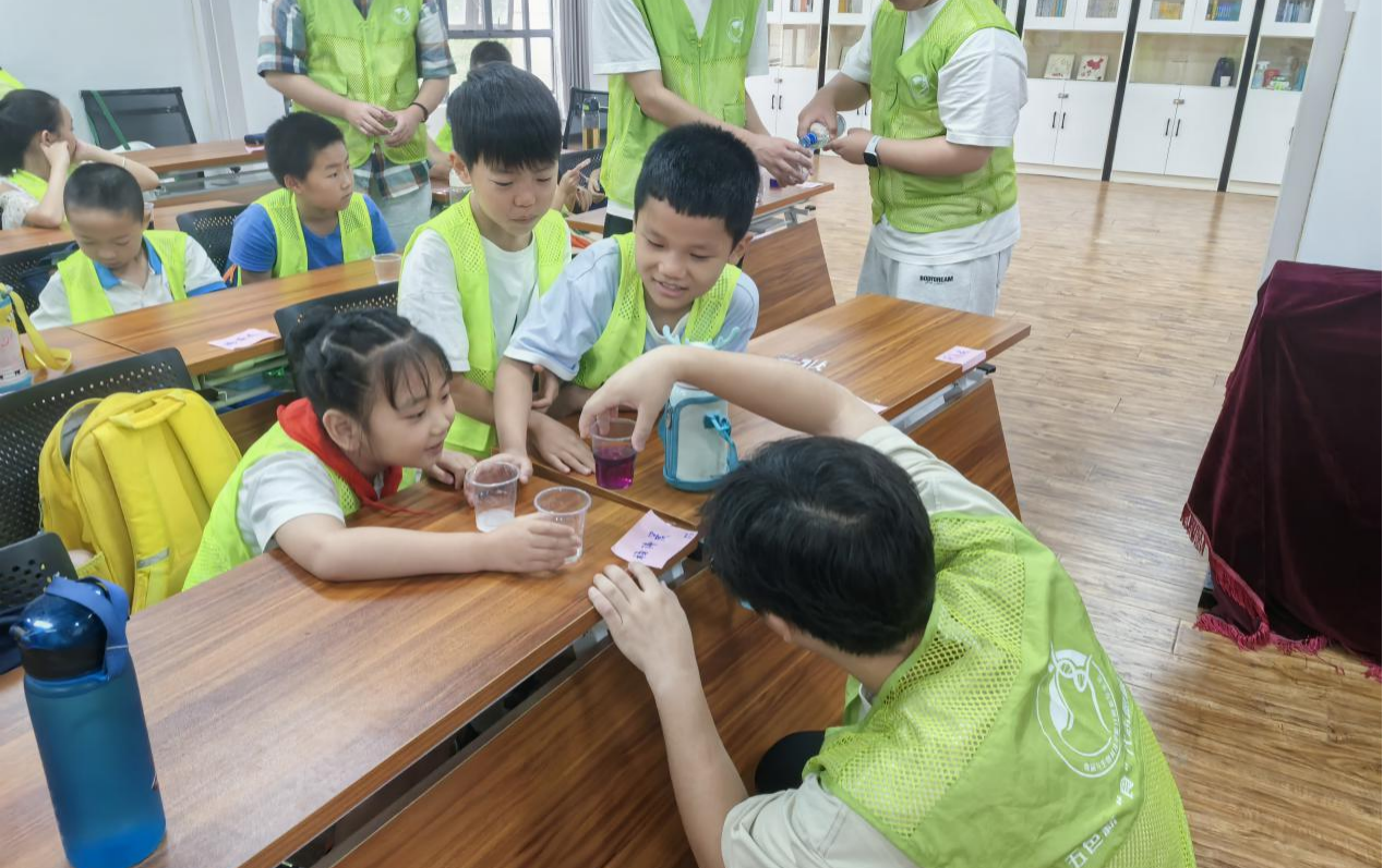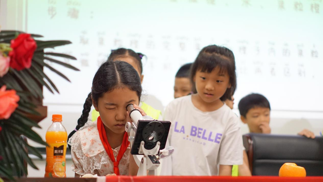 实验互动,激发科学兴趣。活动高潮是一系列设计巧妙的实验,魏凯峯现场制片利用显微镜教小朋友观察果粒橙里的果粒,证实其为真的果粒,非工业合成;通过紫甘蓝变色实验,展示食物颜色变化的科学原理。这些实验不仅增强了课程的趣味性,也让孩子们在实践中学习到了科学知识。
