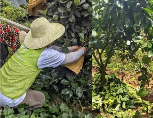 经过4天50公里的走访调研,实践队共发放问卷150份,回收有效问卷127份,生成访谈记录10份,为后续研究提供了详实数据。沿路的村民十分热情的与实践队进行交谈,使得实践队的调研开展的十分顺利。实践队主动提出帮助果农给青柚包袋和修整树枝,给予力所能及的帮助。看起来不是很难的操作,做起来却不简单,队员们小心包裹青柚,将其紧紧密封。经过大半天的劳作,看到一个个被包裹着的柚子,队员们感受到满满的成就感。果农们也表示“非常感谢实践队的热情帮助,大大减轻了我们的负担。”