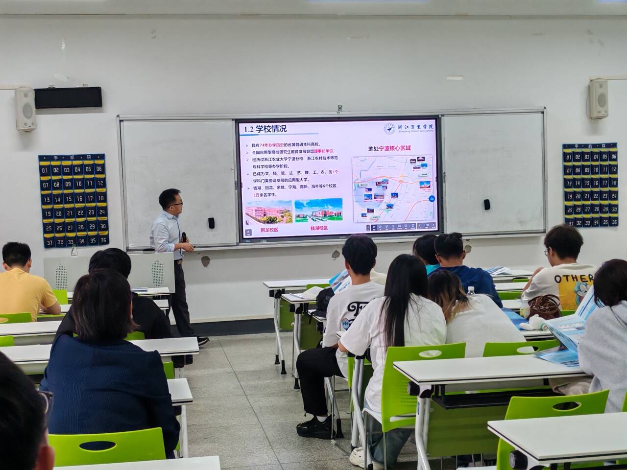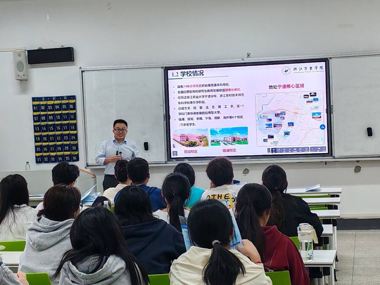 宣讲会上,张建老师首先向参会学生介绍了学院的基本情况、办学特色以及研究生教育的整体布局。他详细讲解了2025年硕士研究生招生政策、培养方案以及发展前景,并强调了学院在学科建设、硕士点建设等方面取得的显著成绩。张老师指出,浙江万里学院一直致力于培养具有创新精神和实践能力的高素质人才,希望广大考生能够积极报考,同时就学生们关心的招生专业、考试科目、校园环境、住宿条件等问题进行了详细的解答和交流。