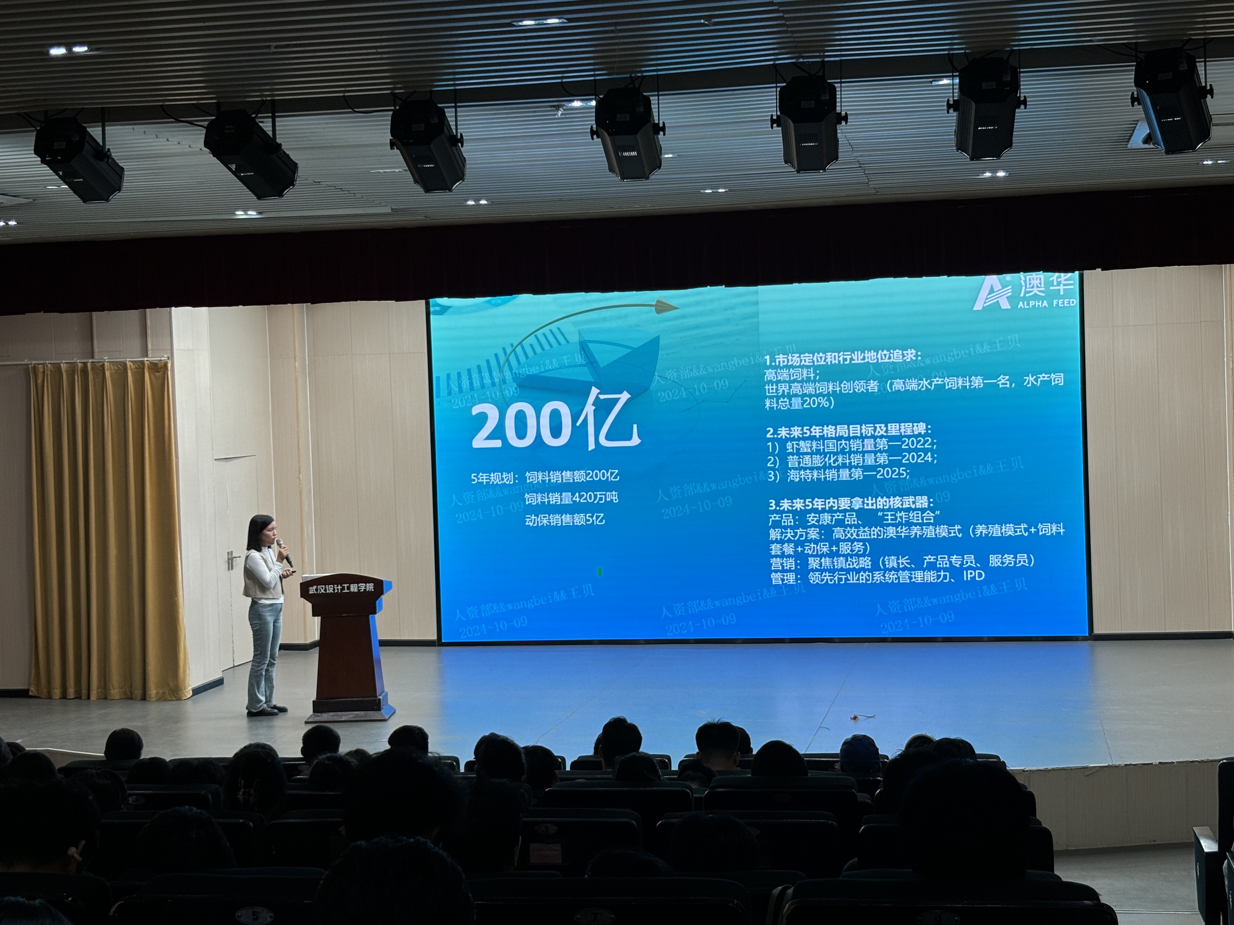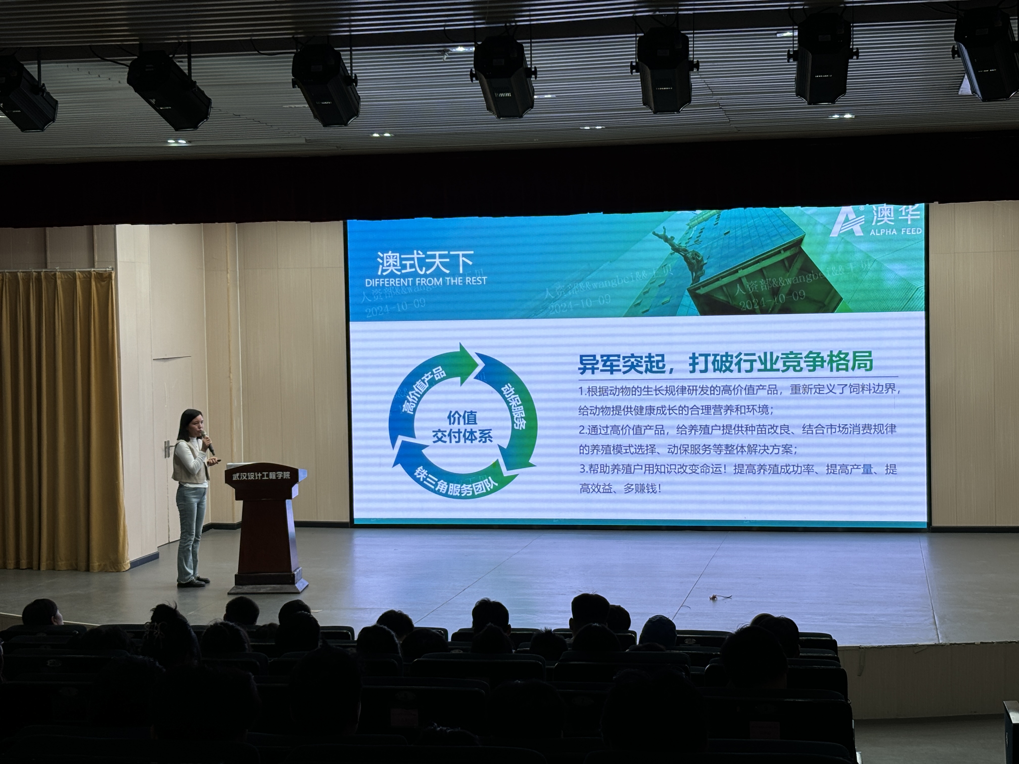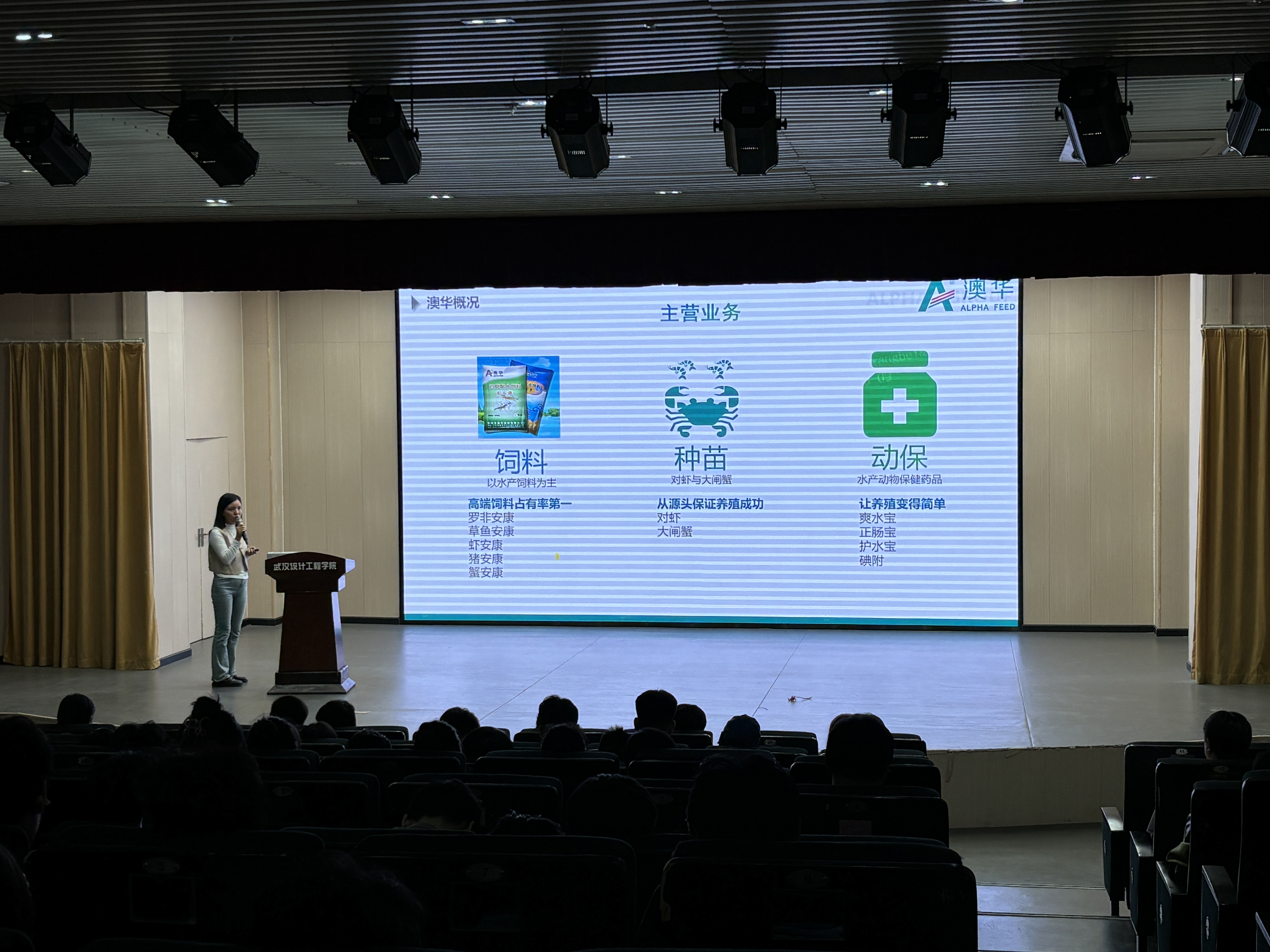 宣讲会上,澳华集团王贝经理以其丰富的经验和独到的见解,向在座的毕业生们深入介绍了澳华集团的企业文化。她强调,澳华集团始终坚守绿色发展的理念,从源头及制造过程严格把控,确保产品的绿色健康,赢得了在场师生的一致认可。同时,王贝经理还详细介绍了澳华集团的业务范畴,涵盖多个领域,展现出澳华集团的强大实力和广阔前景。