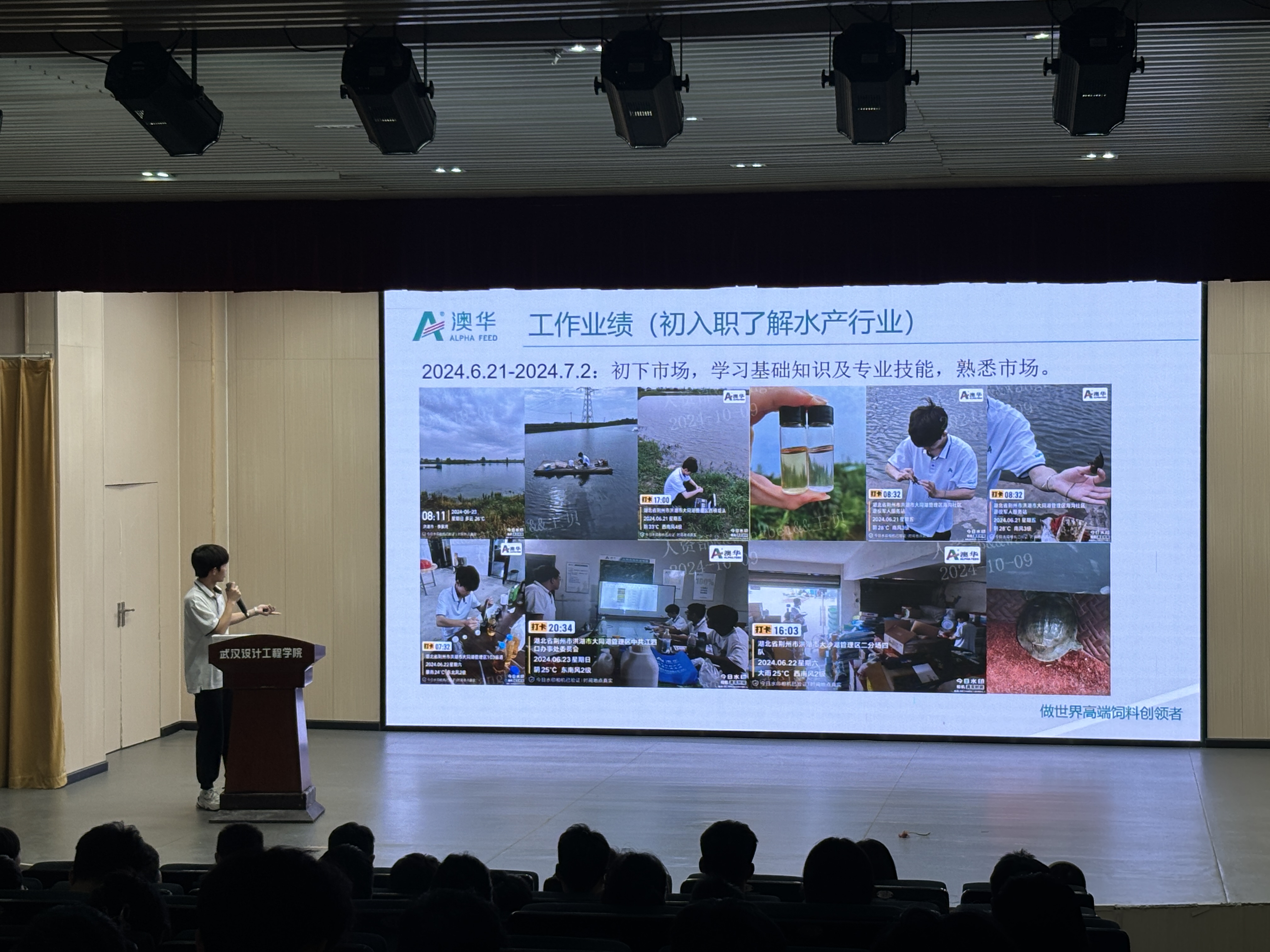 宣讲会的尾声,澳华集团2024届毕业生王海炜作为优秀校友代表上台分享了他的工作经验。他讲述了自己在澳华集团的工作历程,从初入职场的懵懂无知到逐渐成长为公司的中坚力量,每一步都充满了挑战与收获。他鼓励在座的毕业生们要勇于面对挑战,不断学习进步,才能在激烈的职场竞争中脱颖而出。