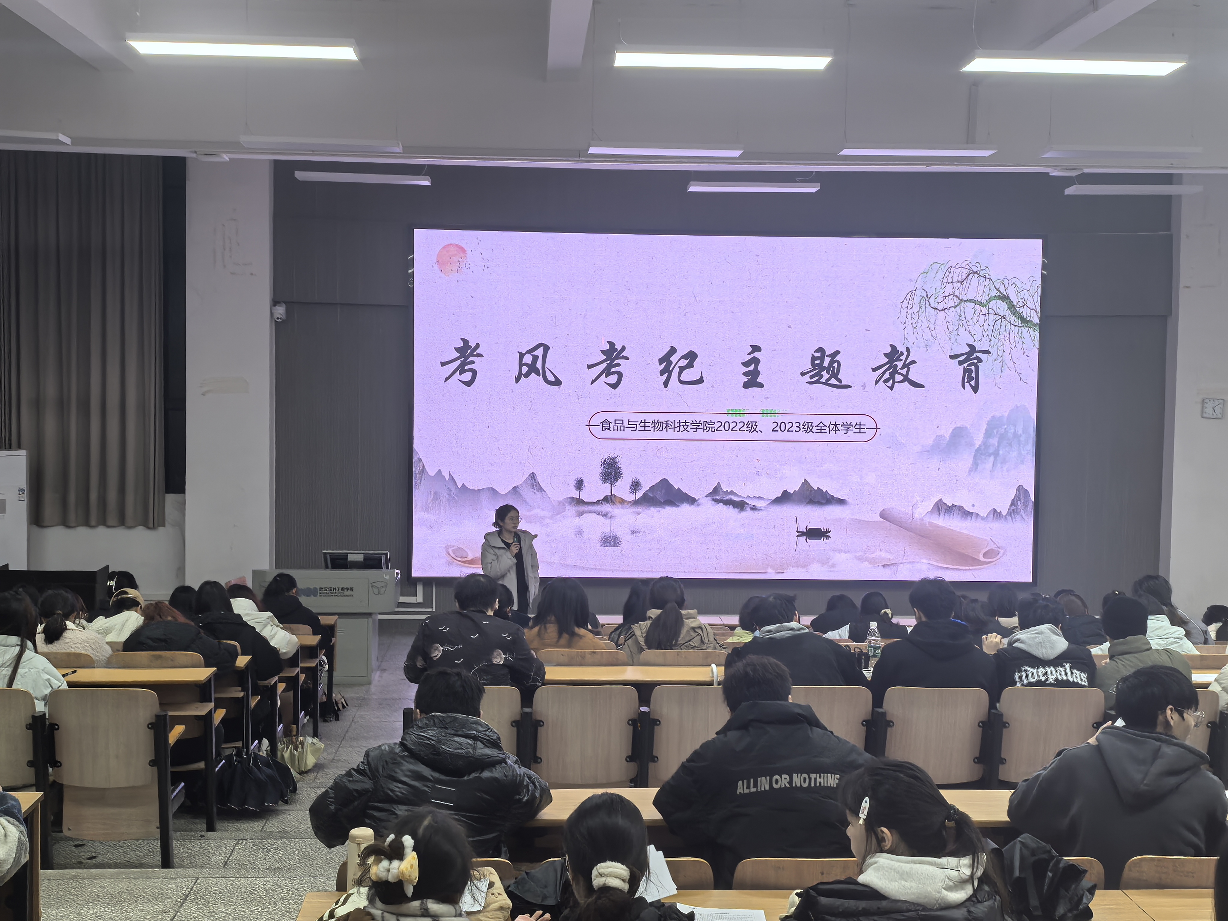 本网讯(通讯员 周伟泽)考风考纪是推进学院学风建设工作的关键环节,是体现学院优良学风的重要指标。全国大学英语四、六级考试和本学期期末临近,为进一步加强学院学风建设,严肃考风考纪,杜绝考试违规违纪行为,营造诚信应考的校园环境,6776永利集团面向全院报考四、六级的考生,于12月10日在和光1019组织开展了考风考纪主题教育活动,活动由23级辅导员张茹月主持。