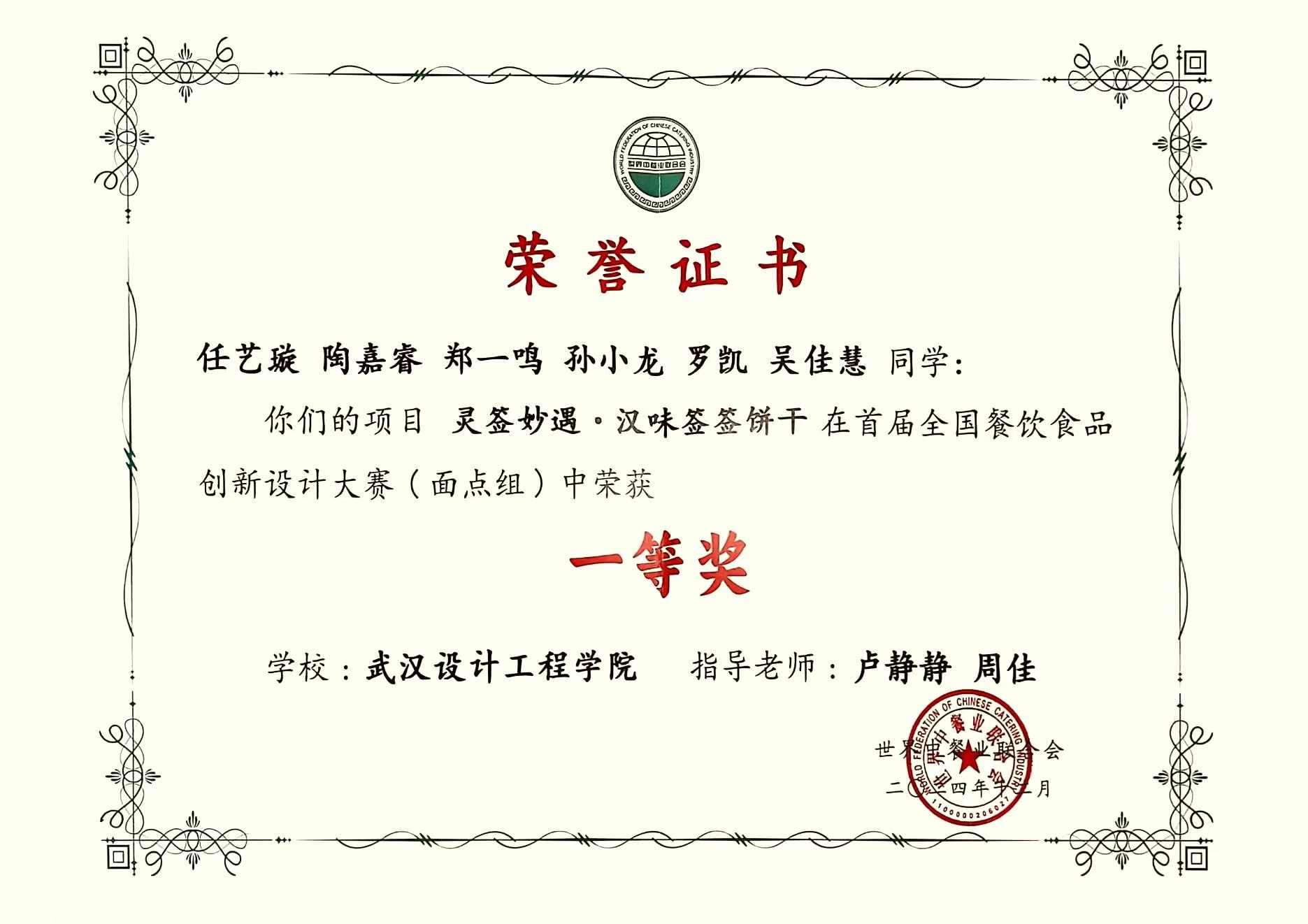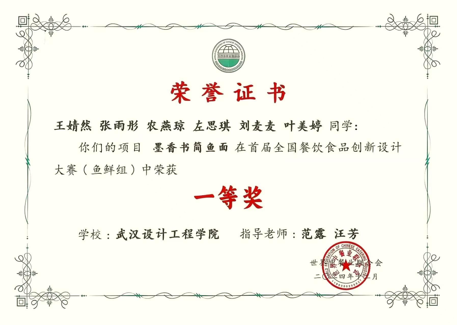 本网讯(通讯员 范露)近日,在武汉晴川假日酒店举行的首届全国餐饮食品创新设计大赛上,我校学子与来自全国各地的25所高校的59支团队同台竞技,共同展开了一场别开生面的创新美食盛宴。大赛分为两个赛道——面点组和鱼鲜组,我校选送的4个项目获得一等奖2项,二等奖1项,三等奖1项,成绩喜人,其中墨香书简鱼面更是以鱼鲜组第一名的成绩摘得桂冠。