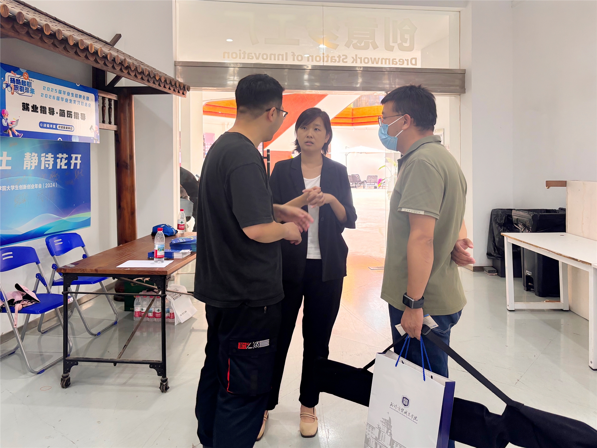 招聘会现场,各家企业的展位前人头攒动,学生们结合自身职业规划与企业招聘需求积极投递简历。HR则耐心解答学生们的疑问,详细介绍企业文化、岗位需求及职业发展路径,力求让学生们对心仪的企业有更全面的了解。学院副院长付晓燕、就业联系人张智和2026届毕业班辅导员张茹月也来到了招聘会现场,与企业代表们进行了深入的交流与探讨,表达了学院对毕业生就业工作的高度重视与全力支持。