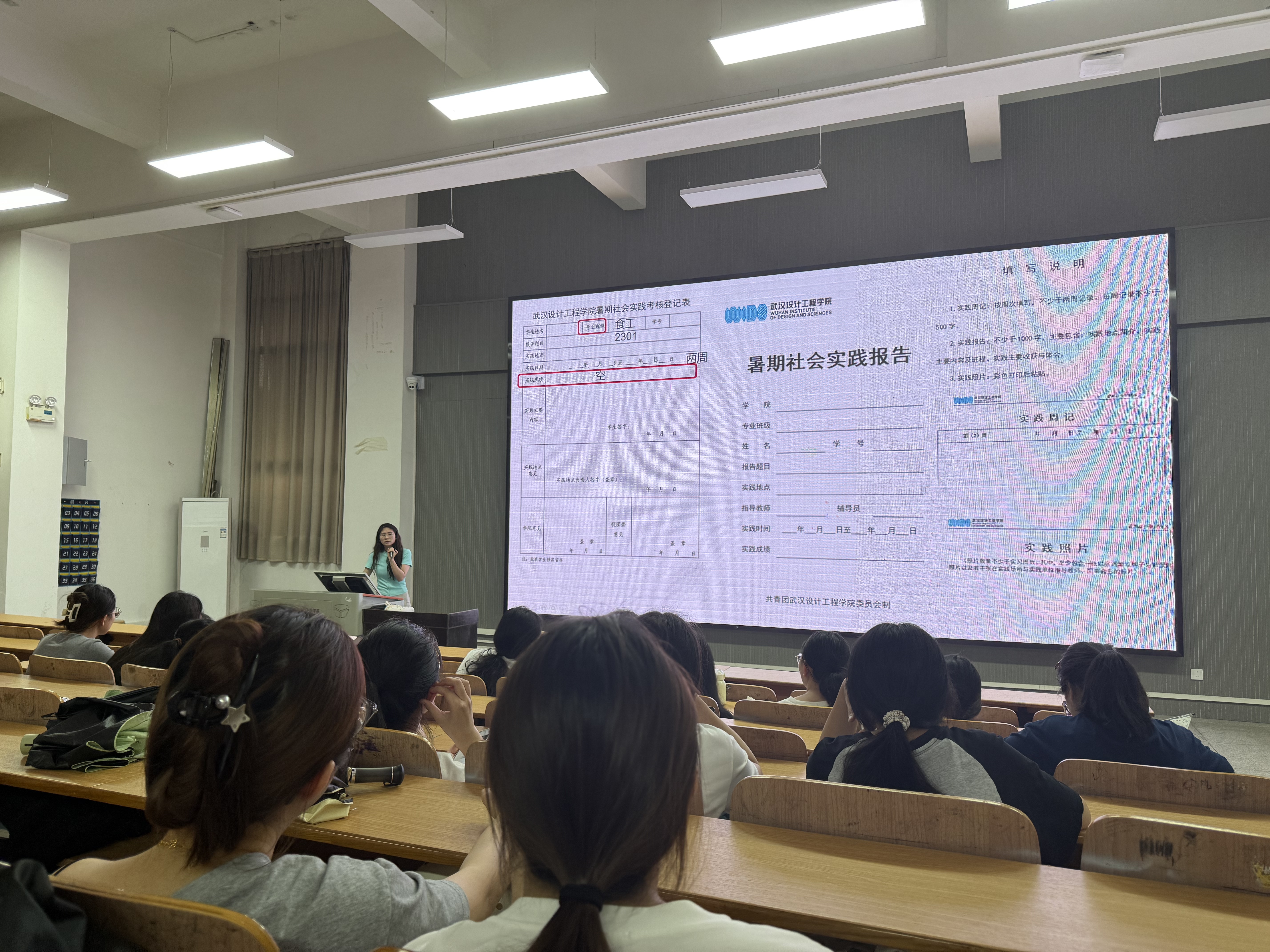 随后,张茹月详细讲解了暑期社会实践报告的填写注意事项。在内容方面,报告需围绕实践主题,详细阐述实践目的、过程、方法、成果与收获,要求内容真实、具体,突出个人的实践体会与思考;格式上,需严格按照学校统一模板进行排版;提交时间上,务必在规定时间内以班级为单位提交至学院办公室,逾期视为未完成实践任务。
