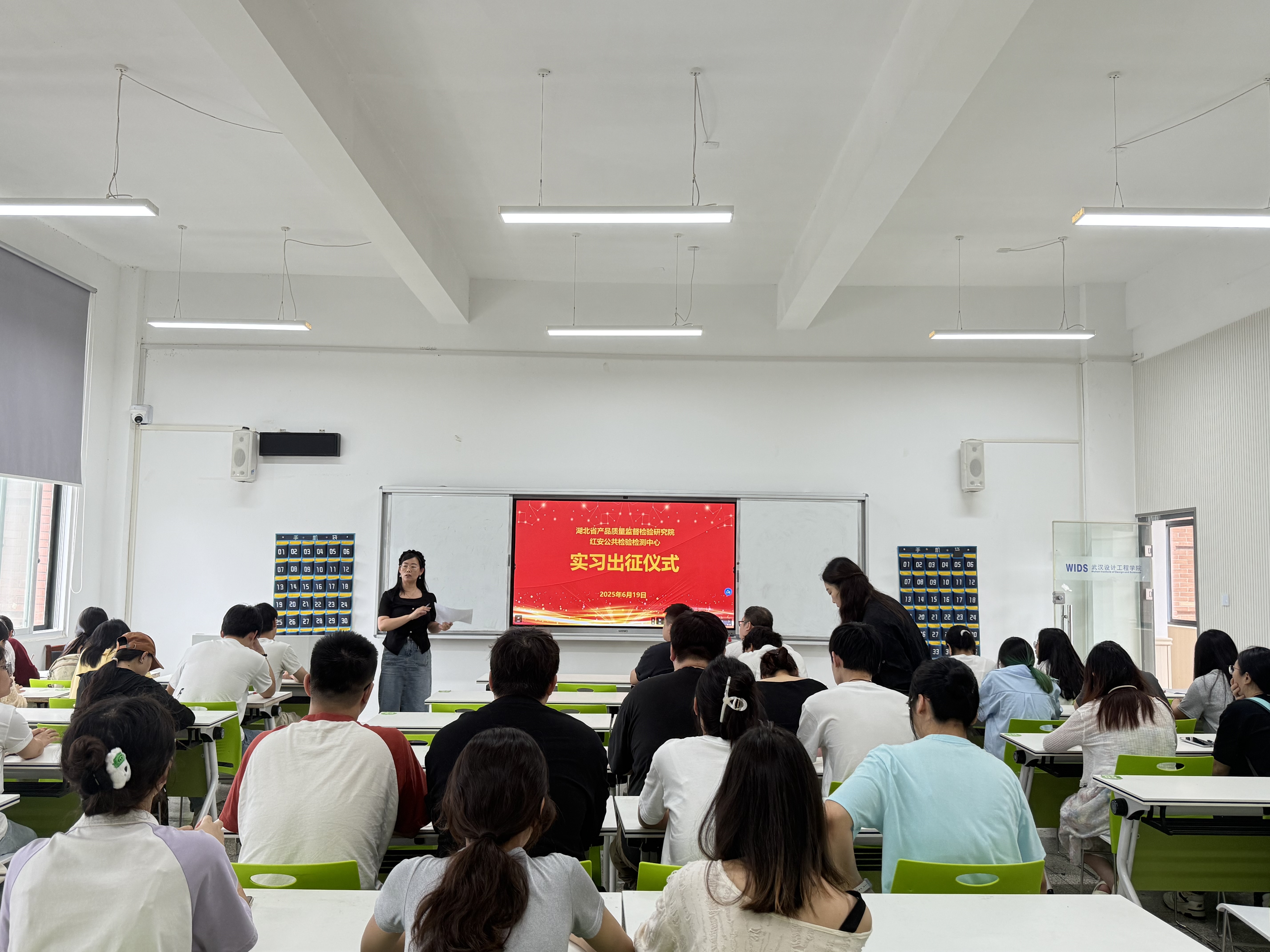 出征仪式上,副院长付晓燕强调,此次实习安排经学院多轮研讨确定,充分考虑了两个实习单位的特色与学生专业发展需求,希望同学们把握机会,在岗位上认真实践,夯实职业发展基础。“湖北省产品质量监督检验研究院有着完备的标准化检验流程与先进的检测设备,能让大家接触到行业最前沿的技术;红安公共检验检测中心则能让大家深入一线,了解农产品质量检测的实际操作,以及如何运用专业知识服务地方产业,两者都是难得的学习平台。期待大家在实习中取得优异成果,为未来职业发展积累宝贵经验。”