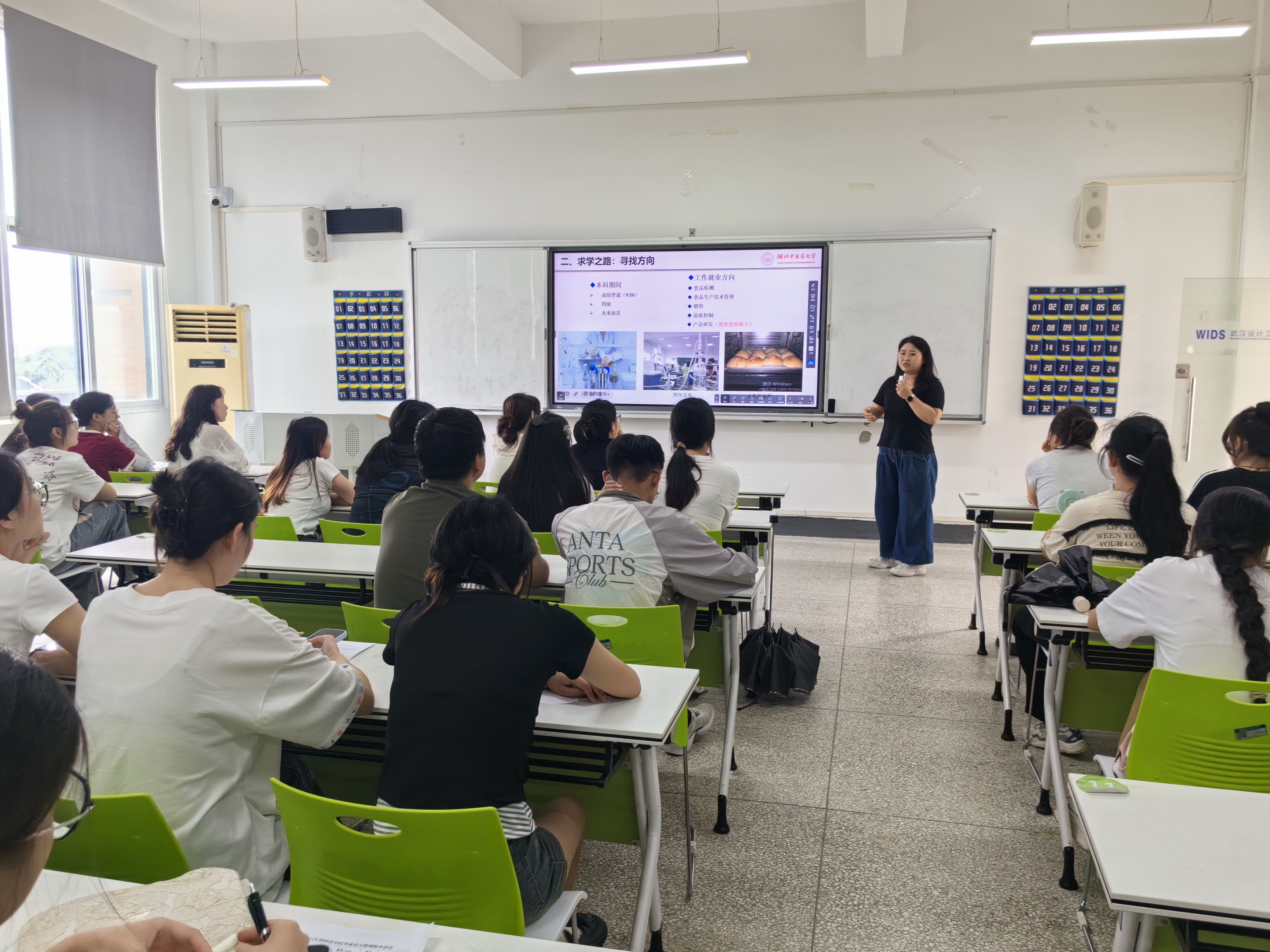 张莉会副教授回顾了自己求学路上的点点滴滴,分享了从华中农业大学楚天学院到湖北中医药大学的心路历程,以亲身经历讲述了从确定考研目标、科研初体验到博士期间针对生鲜食品贮藏加工中关键难题的攻坚过程。她特别提到,在校期间扎实的理论学习与实践训练为她后续的科研工作奠定了坚实基础,并鼓励在场学子珍惜大学时光,重视专业实习实践,科研需要“从实践中来,到实践中去”,同时也要紧密结合产业需求,才能实现技术创新的真正价值。