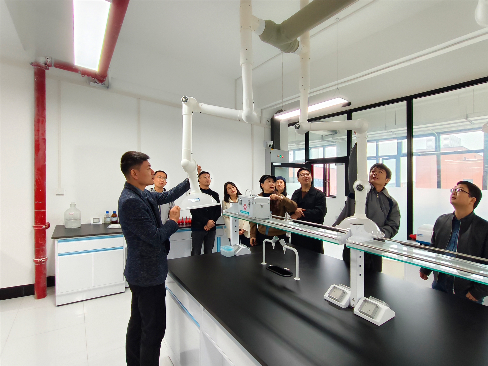 会前,仟吉集团人力行政中心HRBP总监宋磊、武汉市仟吉食品销售有限公司招聘课长刘自力、茶颜悦色湖北人力资源部负责人刘洁一行参观了我校红安校区的实验室。在参观一楼实验室时,张智介绍了学院校企共建实验室的规划方案,引起了企业方面的兴趣。