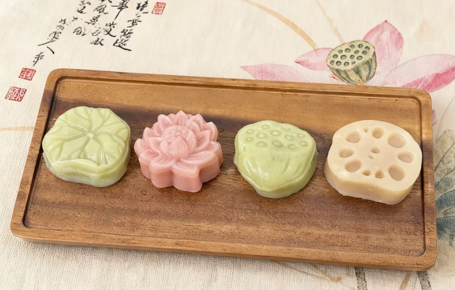 本产品以脱皮绿豆为核心原料,融合黄鹤楼、桂花、莲花、莲藕这四类武汉地域特色元素,打造兼具美味与文化内涵的发酵面点类食品。产品在传统绿豆糕配方基础上,添加武汉特色食材提升营养。通过“食品+创意发酵+旅游”的模式,满足消费者对健康美味与文化体验的双重需求,具有显著的创新意义与市场价值。