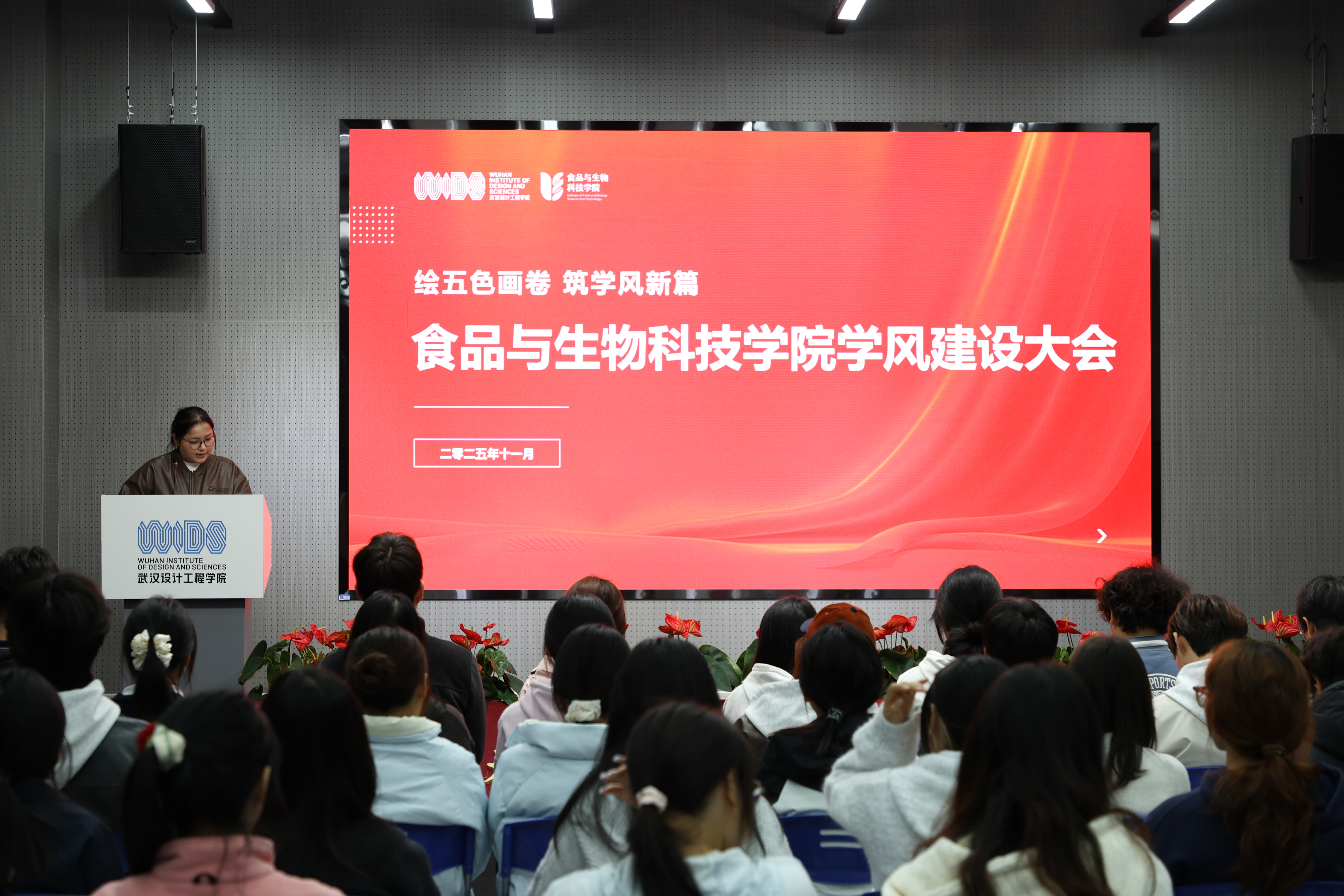 本网讯(通讯员 程曼丽)为营造优良学风氛围,激发学生学习内生动力,筑牢人才培养根基,我院于11月11日18:00在红安校区H1-1019多功能报告厅召开“绘五色画卷,筑学风新篇”学风建设大会。学院辅导员老师,各专业学生代表齐聚一堂,共同启动学风建设系列活动,明确学风建设目标与要求。