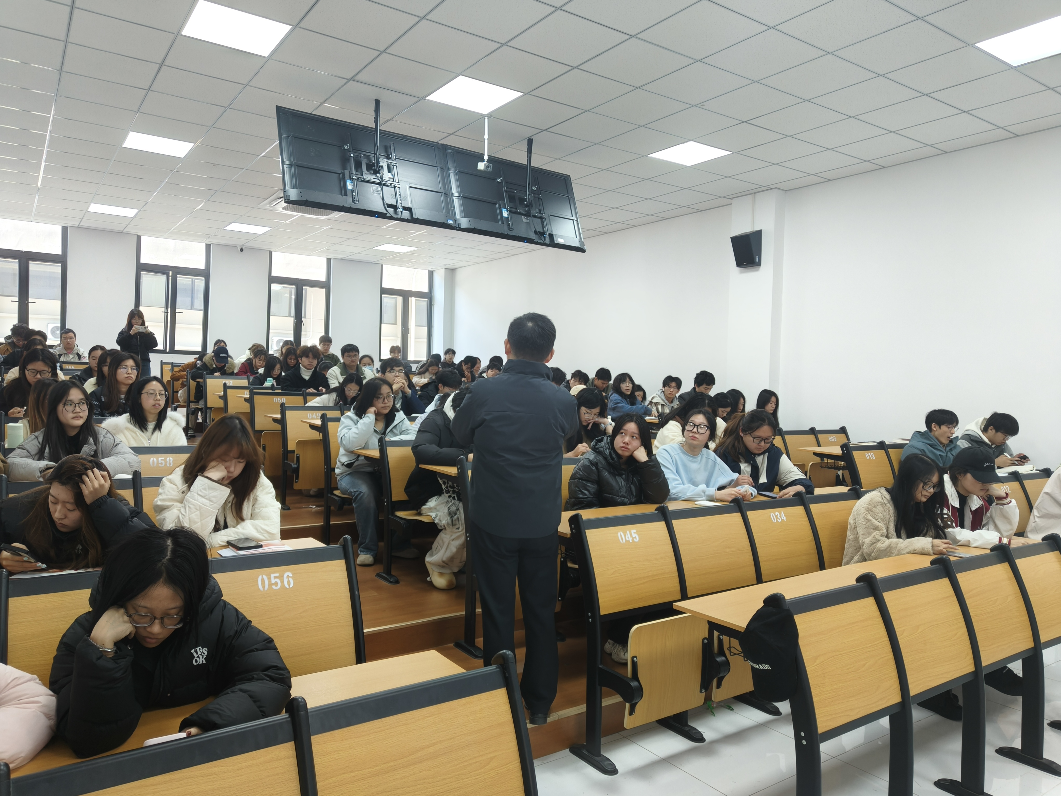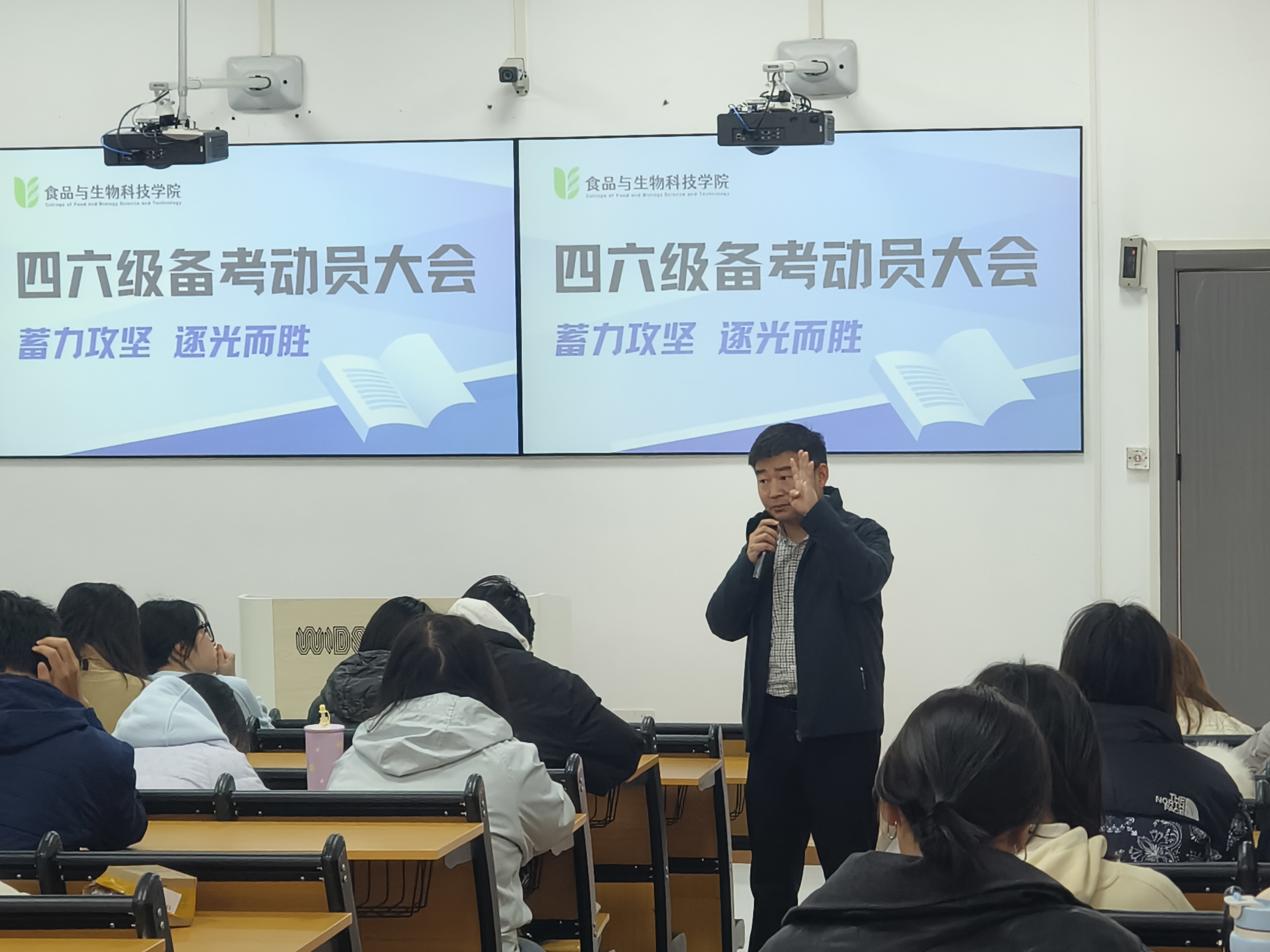 大会伊始,邱朝坤老师便将四六级备考与学风建设紧密结合。他指出,四六级考试既是对语言能力的检验,更是对学习态度、自律精神的锤炼,此次动员大会是学风建设月 “以考促学、以学促优” 的重要实践,旨在引导学子养成科学学习习惯,凝聚勤学、善学、乐学的良好氛围。