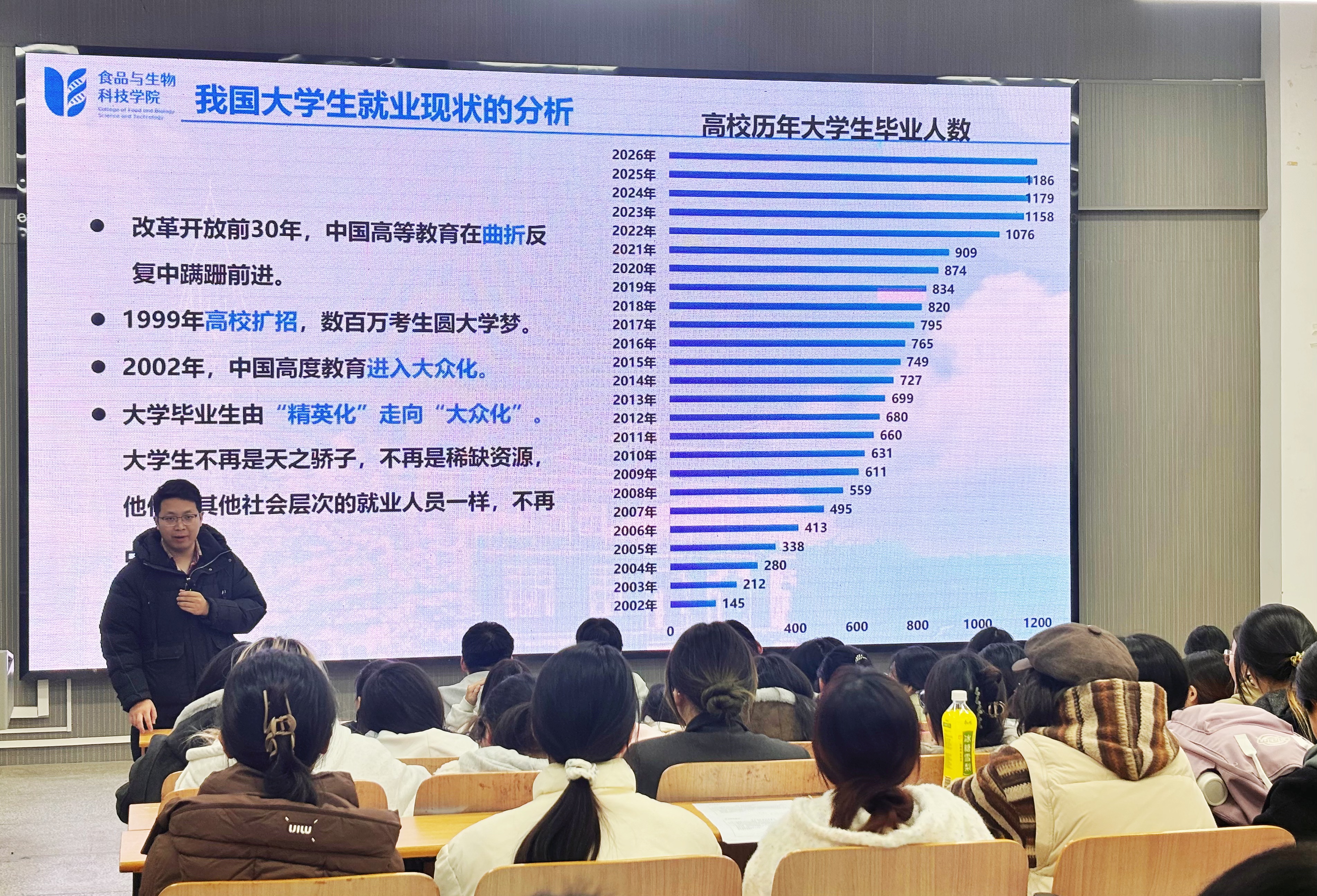 本网讯(通讯员 张茹月)为帮助学生深入了解当前的就业与考研形势,明确目标、增强信心,助力学院高质量人才培养,12月9日,学院在和光1019举办2027届毕业生就业形势分析暨考研动员大会。学院副院长付晓燕、分团委书记张智、学院辅导员及全体2027届同学参会。