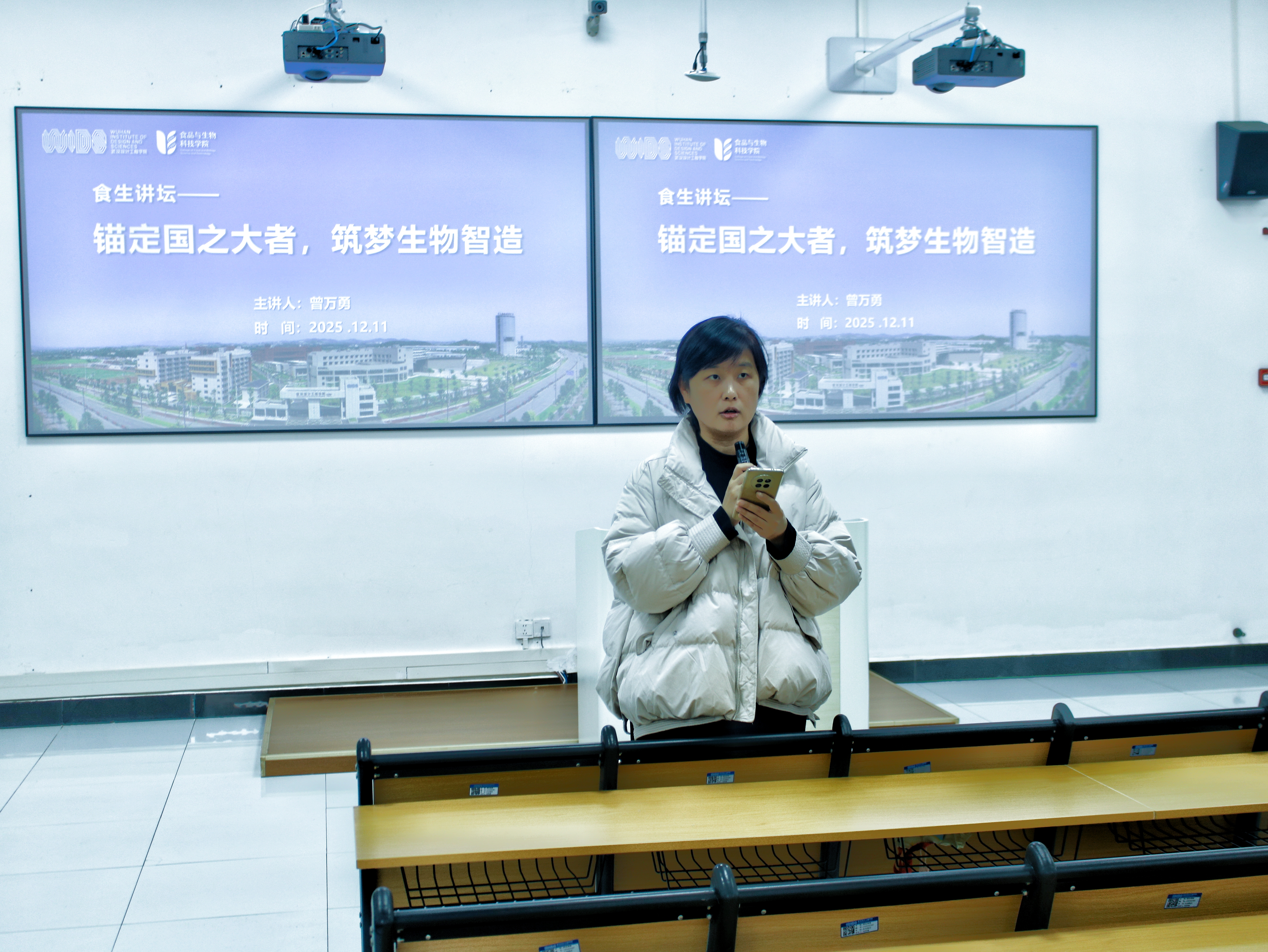 本网讯(通讯员 马冲 黄镘伊)学术赋能成长路,专家领航启新思。12月11日下午在红安校区H1-1059一场聚焦生物制造前沿的专题讲座在我校顺利举行。本次讲座我院特邀武汉轻工大学曾万勇教授主讲,主题为“锚定国之大者,筑梦生物智造”。6776永利集团副院长付晓燕主持会议并致开场词,对曾万勇教授的到来表示热烈欢迎,同时鼓励在场师生把握学习契机,深耕专业领域,拓宽学术视野。