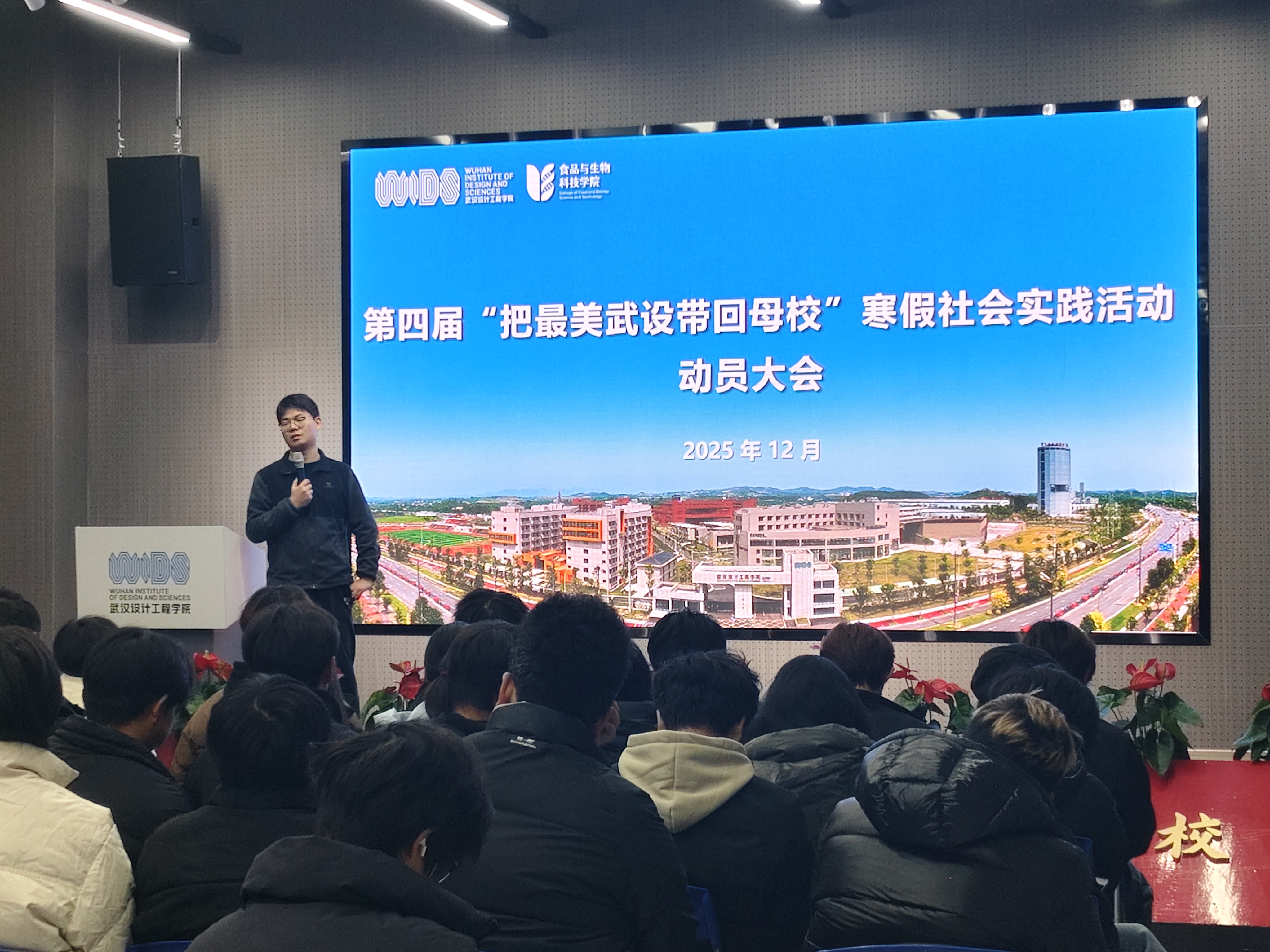 最后,郝强楷同学送上暖心鼓励:学院实力雄厚,希望大家深入了解学院竞争力,不必因“985、211”标签自卑;实践的核心是突破自我,从不敢宣讲到勇于展示的成长,远比标签更耀眼,相信高中老师也会认可这份进步。动员与经验分享的双重助力,让这场大会成为寒假实践的“启航加油站”。未来,食生院的学子们将以青春为帆、热爱为桨,组建实践团队奔赴母校之约。他们带着武设的培养印记与专业温度,既会用真诚回馈母校滋养,为学弟学妹点亮升学指路明灯;也会用鲜活的武设故事,搭建起两校交流的温情桥梁。这场跨越校园的实践之旅,终将成为他们锤炼自我、收获成长的宝贵历练,为大学生涯留下兼具责任与热爱的青春印记。