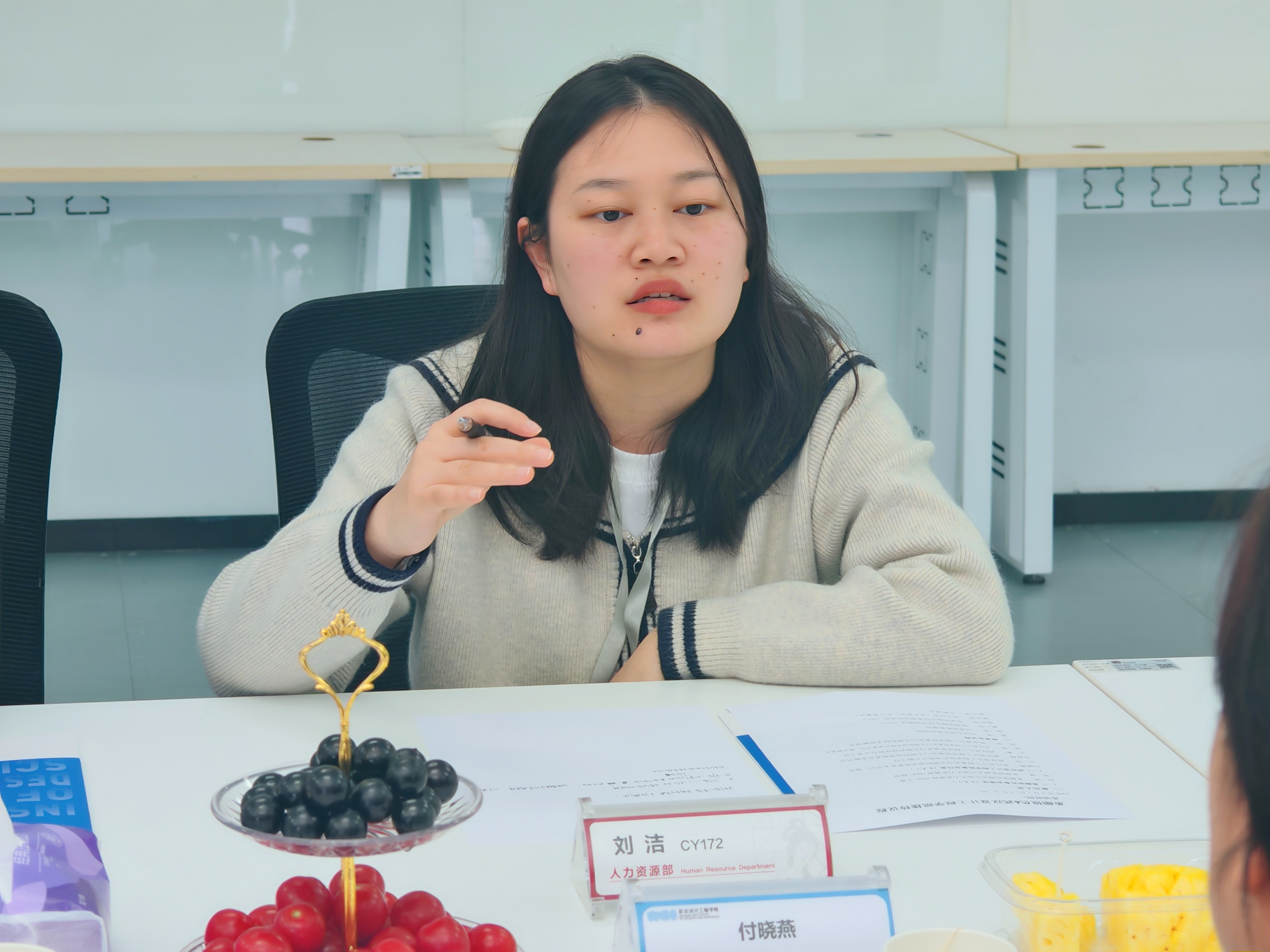 座谈交流环节成为本次活动的核心,双方围绕学生就业、实习安排、产学研合作、学生活动共建等关键议题展开深入探讨,气氛热烈、成果丰硕。付晓燕重点介绍了学校学生的整体素养、专业能力及就业意向,详细阐述了后期实习工作的规划与安排,提出希望与茶颜悦色共建实习实践基地,搭建“校内培养+企业实践”的双向育人平台,让学生在真实岗位场景中提升实操能力,实现校园与职场的无缝衔接,为企业输送“下得去、用得上、留得住、干得好”的优秀毕业生。