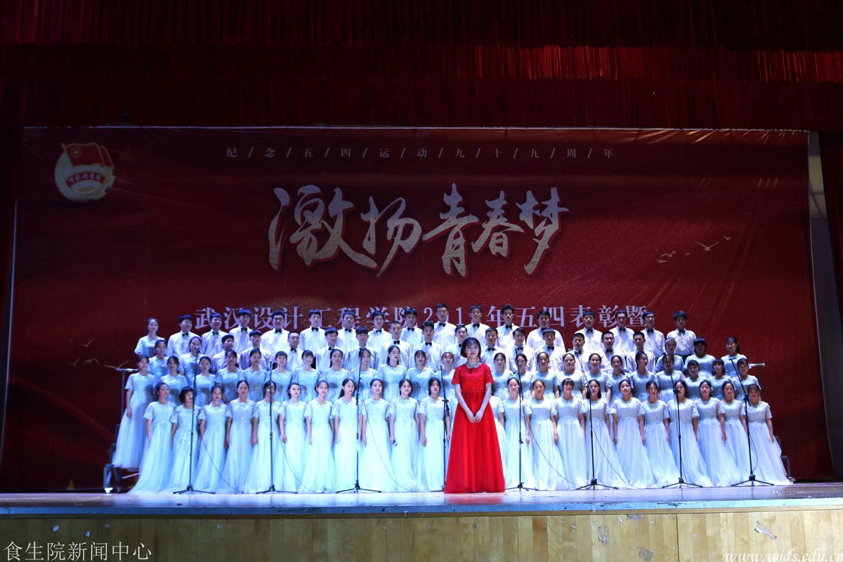 在舞台上,指挥身着红色长裙,女生身穿水蓝色礼服;男生统一的白衬衫、黑领结,挺拔的精神面貌展现了我院风采,他们伴随着空灵动人的歌声及掌声完成表演,最终以90.9分的成绩荣获五月的花海合唱比赛二等奖。