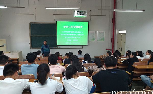 本网讯(通讯员 范露)世界龙虾看中国,中国龙虾看湖北。2018年5月23日,湖北省水产技术推广总站汤亚斌研究员应邀为我院师生作了一场题为《虾稻共作关键技术》的精彩报告。报告会上汤教授从湖北省小龙虾养殖加工现状、小龙虾生物学特性、虾稻共作技术三个方面给大家呈上了一场小龙虾养殖技术大餐。汤教授幽默风趣,报告深入浅出,现场笑声不断,氛围轻松愉快。报告结束后汤教授热情解答了老师们的疑问,并就小龙虾实验室水箱养殖技术与老师们展开了充分的讨论与交流。
