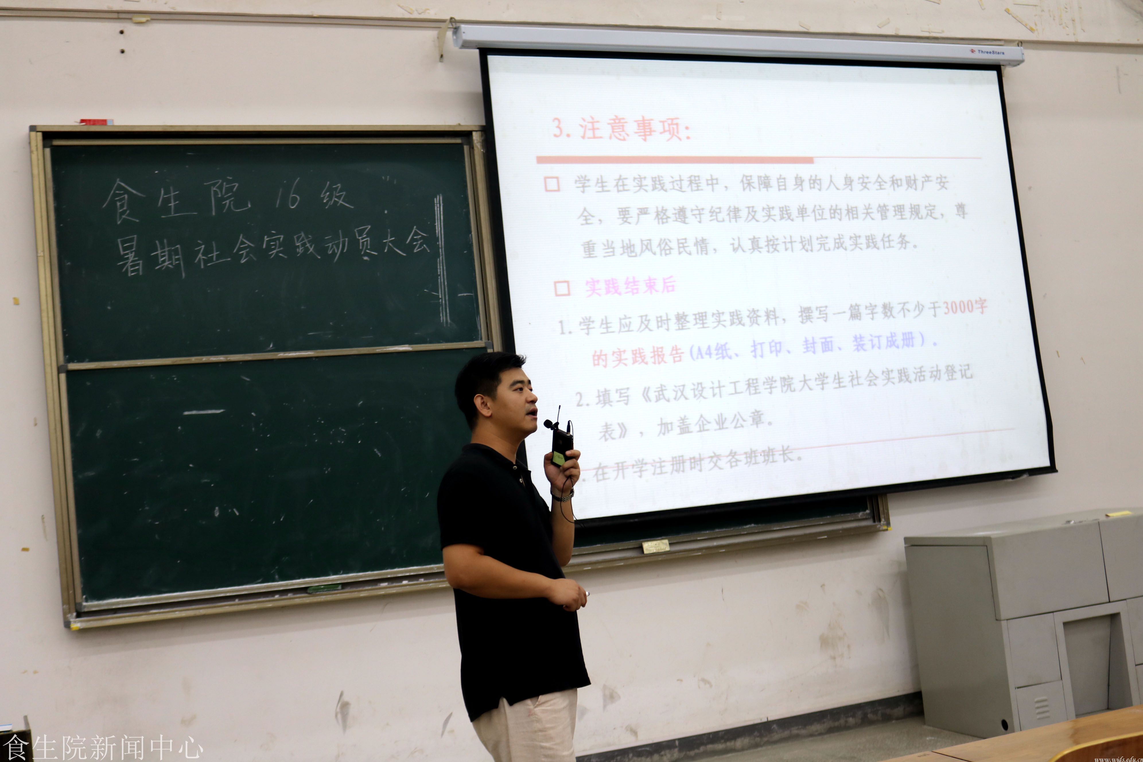 本网讯(记者 付宜萍 李宇琦)为了使我院16级学生充分了解大学生社会实践活动的意义,提高大学生思想政治水平,锻炼其毅力、培养其品格。2018年7月3号15:00,我院16级辅导员周津老师在八佾1019召开食生院16级暑期社会实践动员大会暨期末考试考风考纪强调大会。