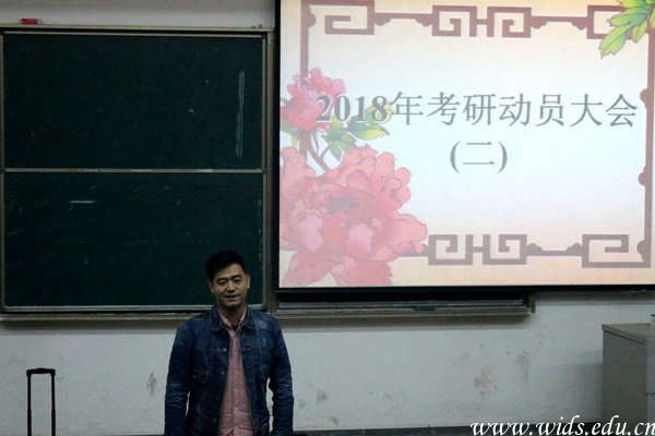 大会开始,邱朝坤介绍了研究生上课的情况,让大家对研究生有初步的认知和了解,也让大家对研究生的生活充满向往!随后他指出,虽然数学是近几年考研率下滑的重要原因之一,但是如果大家将高中学习数学的劲头拿出来,并且认真复习,能考上研究生的概率高达百分之六七十。即使数学怎么学也学不好,没有关系,有些专业中不用考数学!这样的话语让许多因为数学而害怕考研的人也有信心考研!