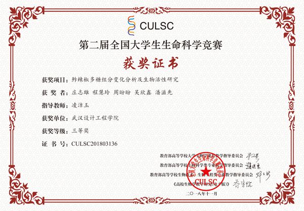 本次竞赛从2018年3月份开始报名、提交项目计划、开展研究、实验当天上传记录、网络评审和现场答辩,一直持续到11月底。我校6776永利集团学子在完成湖北省大学生生物实验技能竞赛的同时,申报参加全国大学生生命科学竞赛,并一举摘获奖项。