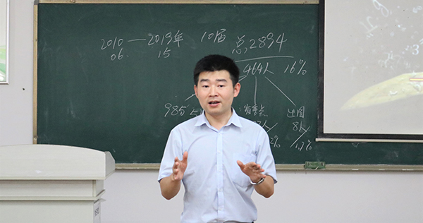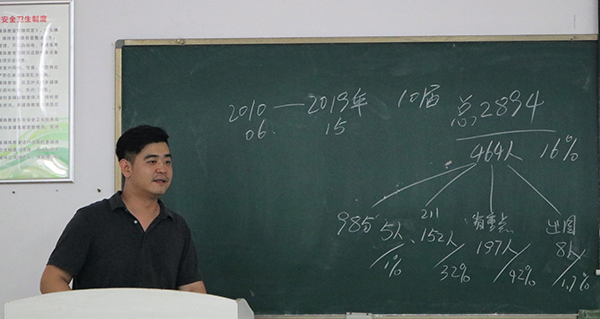 大家分享完以后,16级辅导员周津老师,根据我院近10年升学的数据指导我院学生如何择校,如何定位。最后副院长邱朝坤作总结,他强调考研最重要的是“信念”,指的是信心和行动要一致,告诫同学们,年轻就要有鼓冲劲,有必胜的决心,为同学们加油打气。