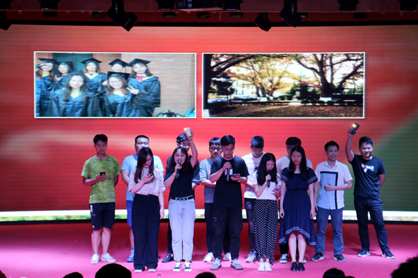 晚会在毕业生代表和肖志老师的讲话中落下帷幕。毕业生代表言语间表达了对学校、老师和同学们的感谢,肖志老师希望同学们时刻铭记:“不管前方迎接你的将是怎样的艰难险阻或是灿烂辉煌,在你的身后一定有你的母校、老师以及同学们的支持和鼓励,这里将是你永远的家。”