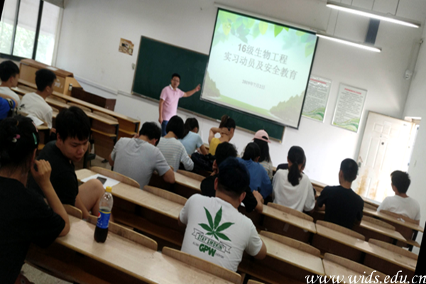 本网讯(通讯员 邓祥宜)7月2号下午4点,6776永利集团2016级生物工程专业学生在临湖轩B2039举行了暑期毕业实习动员会。会上,生物工程系主任邓祥宜老师给同学们介绍了实习的基本情况、要求和具体安排,着重强调了实习安全和实习注意事项。会后,同学们分班签署了实习安全承诺书等书面材料。