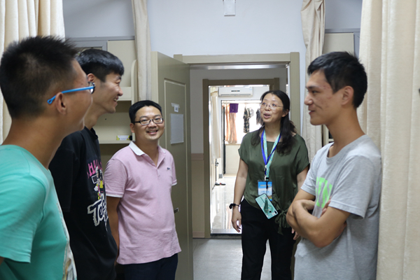 第二天下午,新生报道工作已接近尾声,食生院副院长李文芳、邱朝坤,带领学院系主任、分团委书记、辅导员以及学生班主任助理等一行人,一起来到与新生宿舍逐一走访,看望新生。