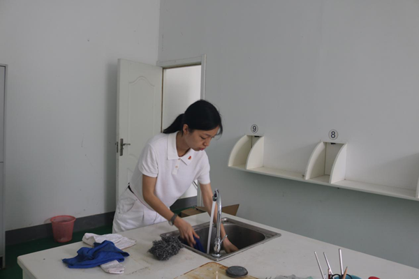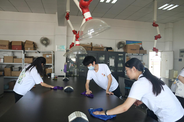 下午三点,支部师生党员在书记李文芳同志的带领下,分别对临湖轩C区一、三、五楼实验室开展清洁志愿服务,并认真检查水电、设备运转情况,排除安全隐患。活动中,党员同志热情高涨、分工明确、积极配合,拿起扫把、抹布等工具,耐心细致地对实验室台面、抽屉柜子、边台等区域的周边乱堆放的杂物进行彻底清扫,将每个抽屉柜里仪器进行整理分类,并对实验室可能造成危害的试剂和物品进行单独保管。活动当天天气十分炎热,党员老师和学生个个汗流浃背,但大家充分发挥了不怕苦、不惧脏、不嫌累的奉献精神,充分发挥党员先锋模范作用,为群众办实事,共同营造实验室的良好环境氛围。