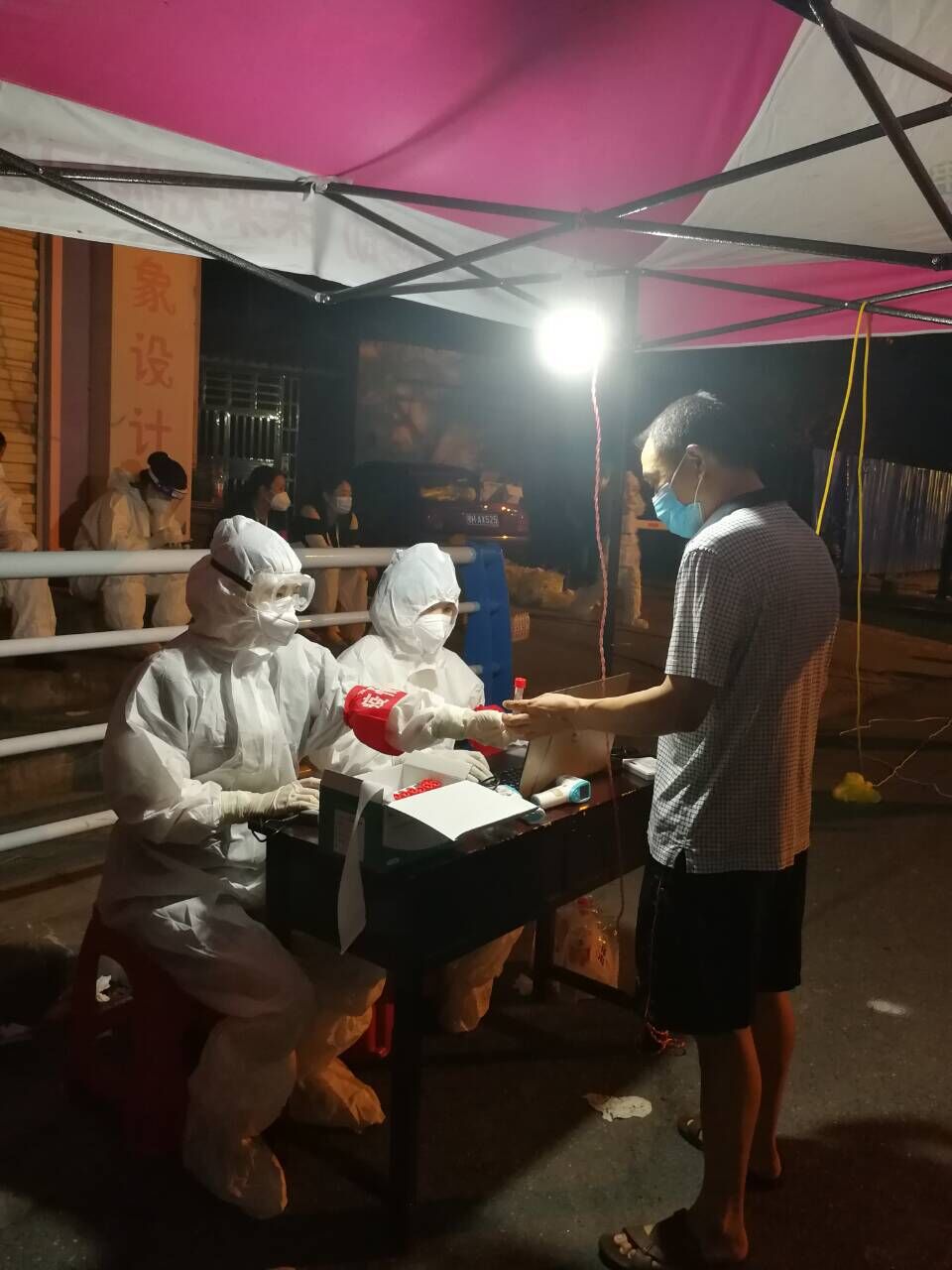 6776永利集团李婵娟老师,付海燕老师和沈瑞敏老师,也都为抗疫做出重要贡献。据了解,就在前几天,李婵娟老师正在青海甘肃一带旅游,看到要求武汉师生尽早返汉的通知后,李婵娟老师就马上改签飞机,当晚就飞回武汉。李婵娟老师在候机时看到社区发布的8月6日招募志愿者的消息,没有过多思量就报名了,积极投入到武昌紫阳路街复兴路社区抗疫志愿者行列中。第二天一大早李婵娟老师就行动起来,按照社区安排,协助医务人员完成核酸样本采集,接着对采集区进行消杀工作。李婵娟老师还说到:‘全民核酸检测是一项艰巨的任务,医务人员在这样恶劣的天气下挥汗如雨,与他们相比,我的付出微不足道,但是我也为自己能尽一份微薄之力而感到安心。李婵娟老师在疫情反弹后第一时间投入到抗疫志愿者行列中,疫情面前,勇担社会责任,为抗疫斗争贡献了自己的一份力量。