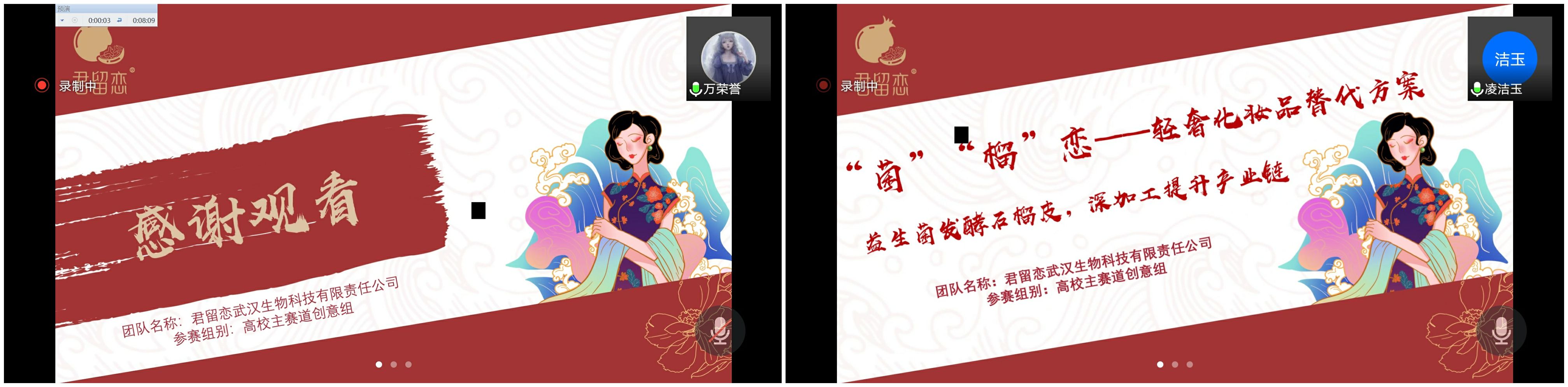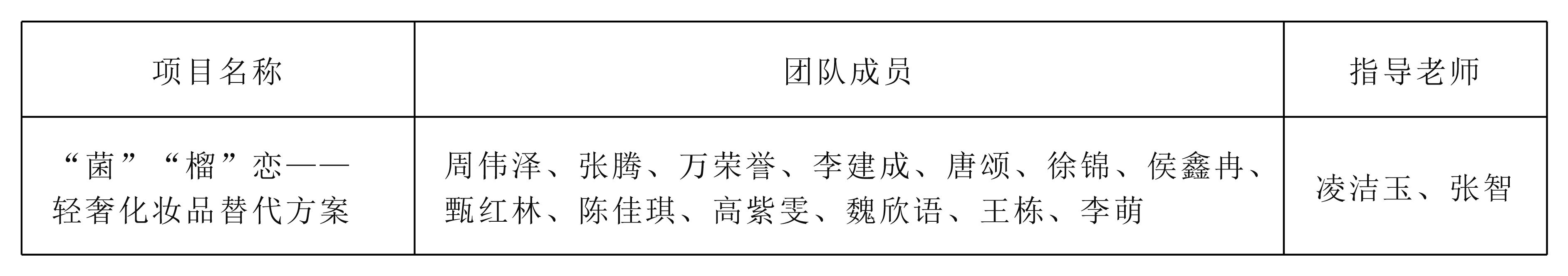 在此大背景下,我院积极响应组委会及学校号召,秉承着“以赛促教、以赛促学、以赛促创”的原则积极动员全院师生共同参赛,学生踊跃参与,全院共有26支队伍参赛,经过院级初赛、校级复赛决赛的层层筛选,最终,由凌洁玉老师、张智老师指导,张腾、万荣誉、周伟泽等13名同学负责的项目《“菌”“榴”恋——轻奢化妆品替代方案》突出重围,荣获校级决赛一等奖并向着湖北省复赛发起冲刺。