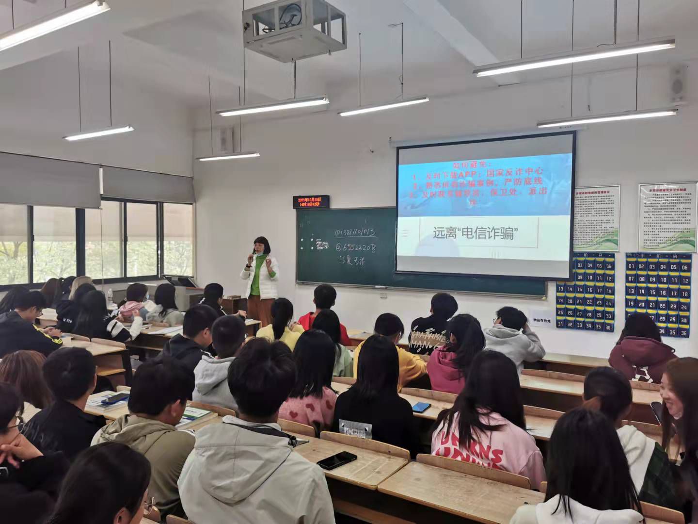 (通讯员 周津 吴宇哲)2021年10月19日中午,6776永利集团于临湖轩B2039教室召开了预防电信诈骗专题知识讲座,由我院周津老师主讲。院党总支书记李文芳,20级辅导员张智,21级全体班委和寝室长等百余人参与此次讲座